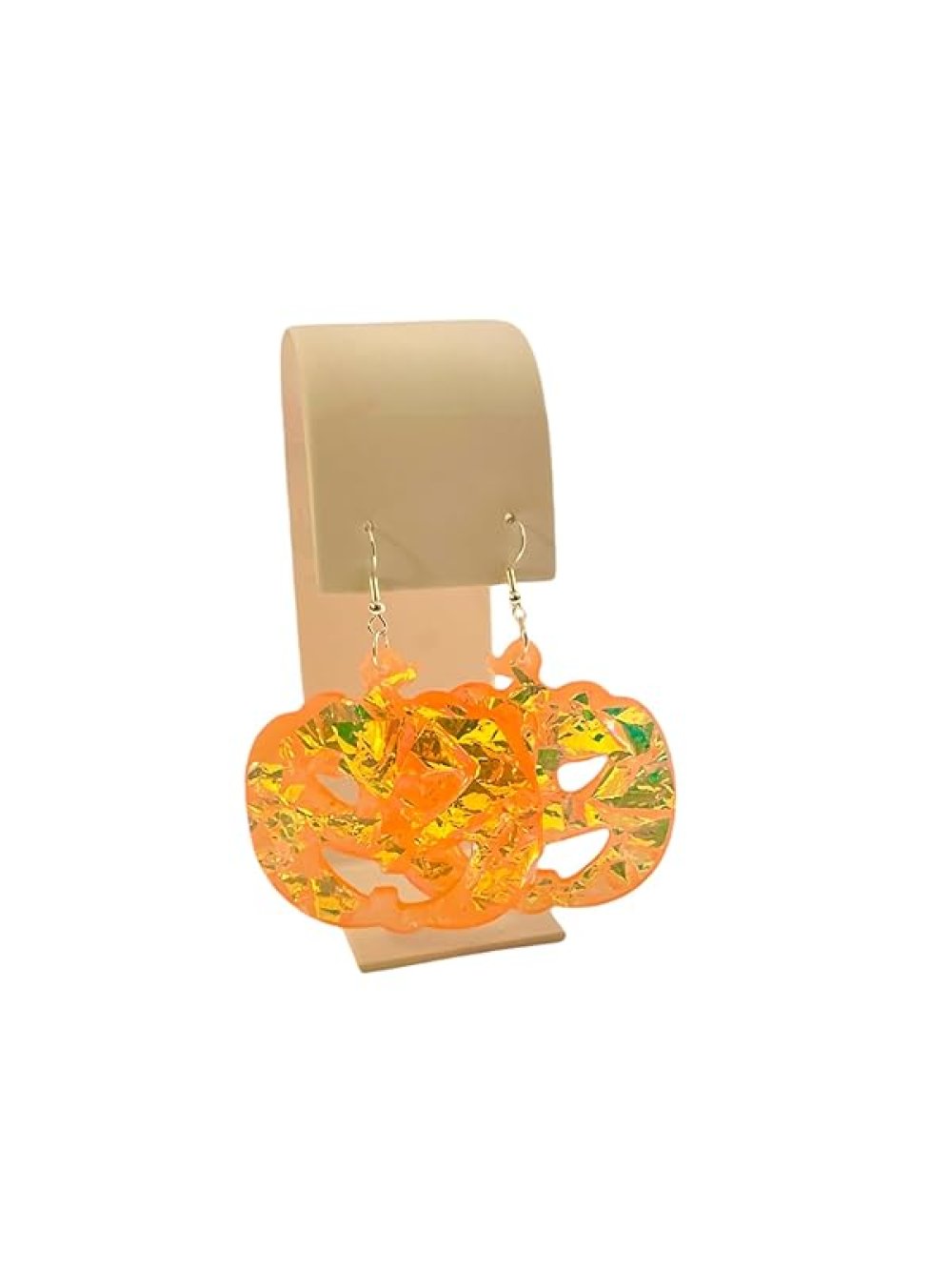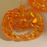 Grandes boucles d’oreilles citrouille en résine orange avec inclusions holographiques. Fait main, originales et lumineuses, parfaites pour fêter Halloween avec style.