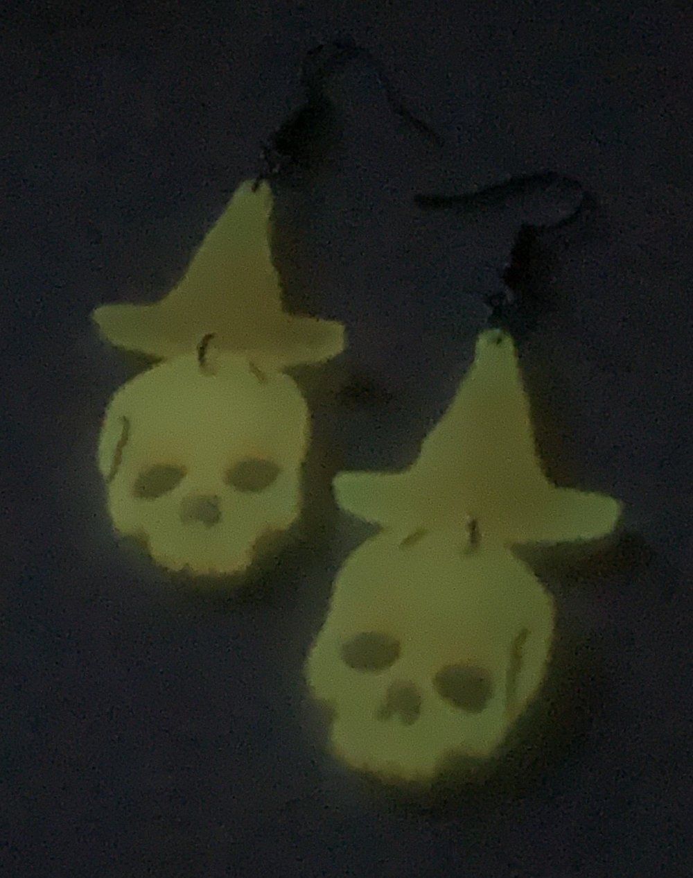 Préparez-vous à un Halloween ensorcelant avec ces boucles d’oreilles tête de mort et chapeau de sorcière phosphorescentes 🎃