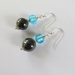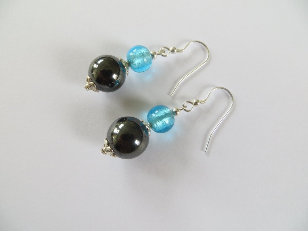 Jolies boucles d'oreilles en hématite et perles verre de Venise .