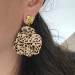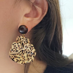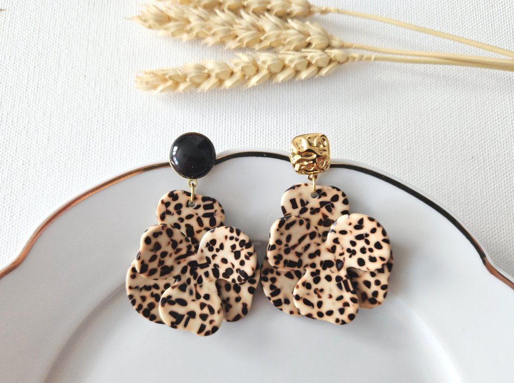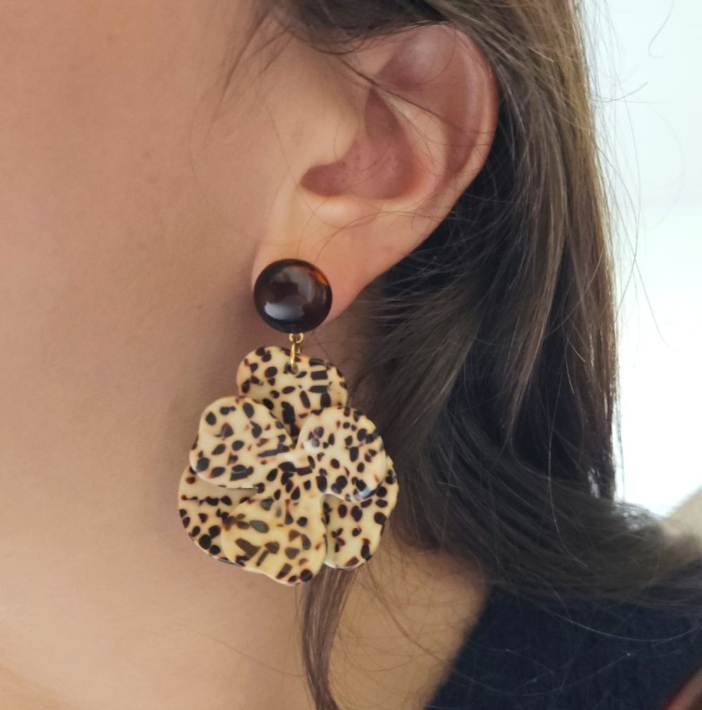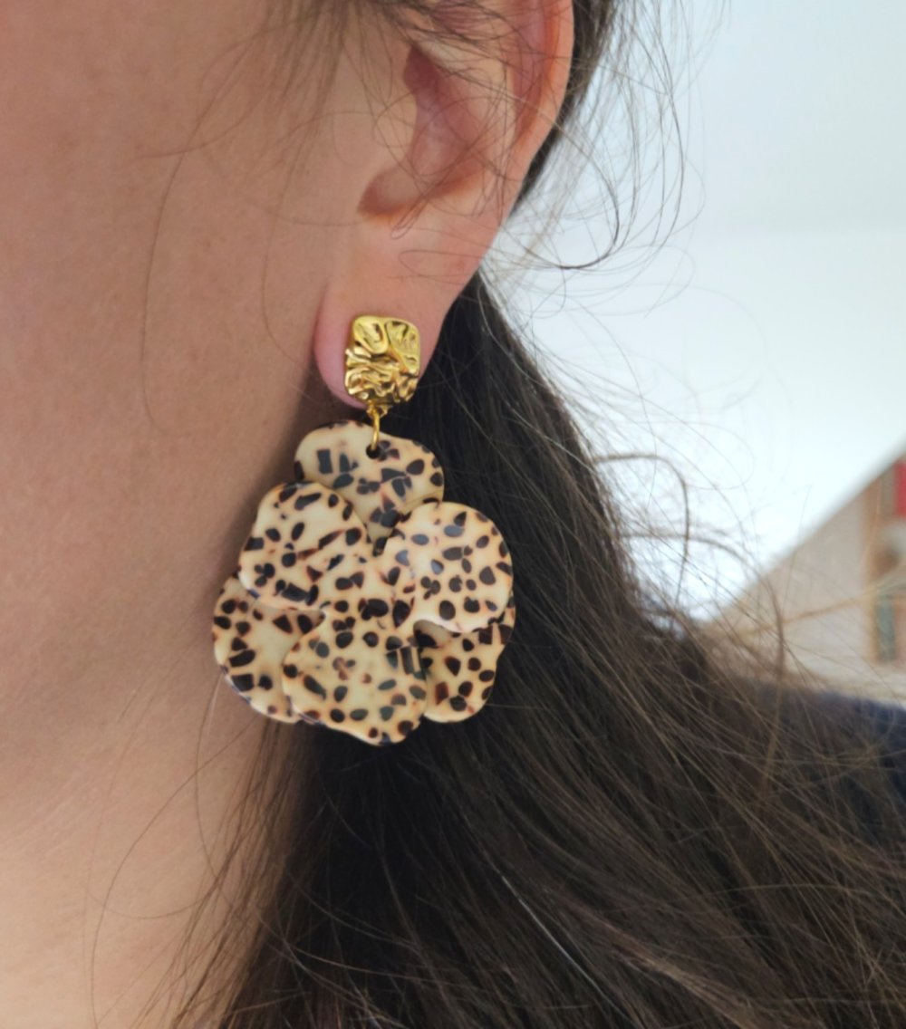 Boucles d'oreilles HORTENSE - fleurs en relief beige tacheté marron en acétate - esprit vintage