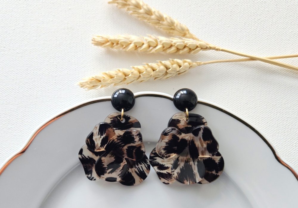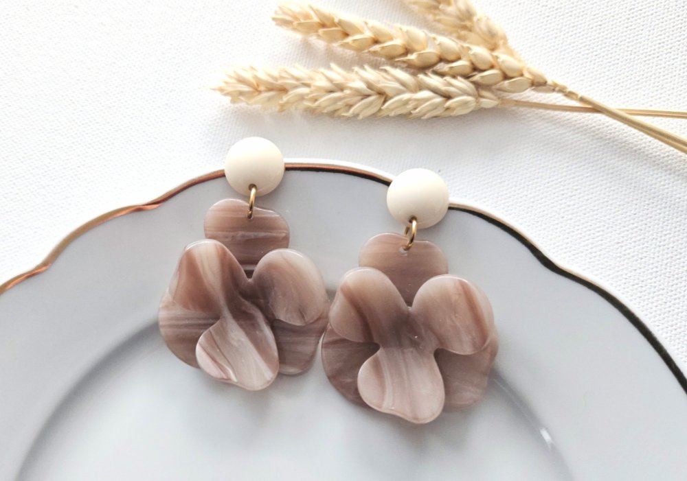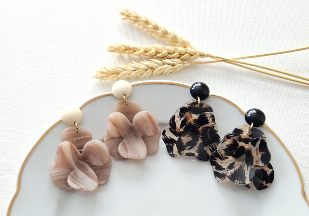 Boucles d'oreilles HORTENSE - fleurs en relief en acétate - esprit vintage