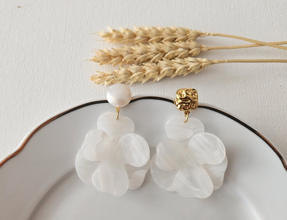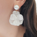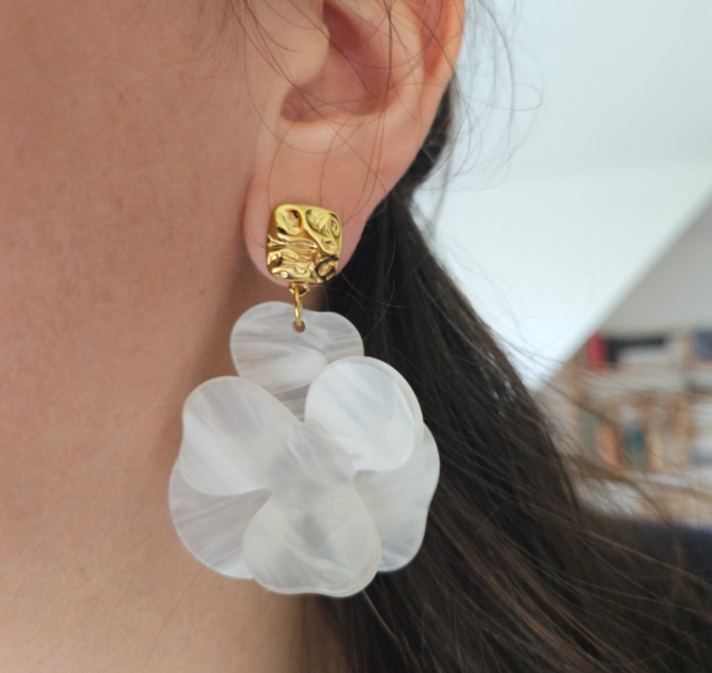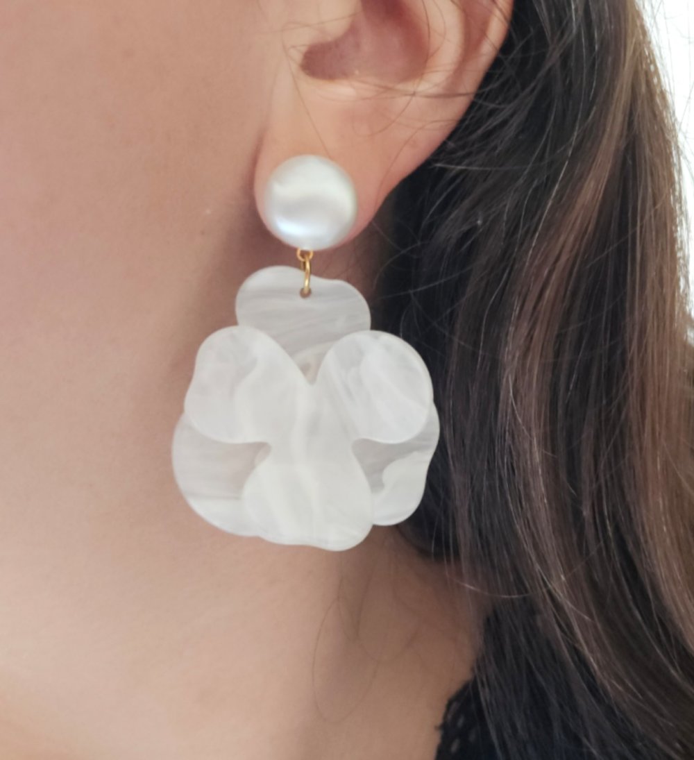 Boucles d'oreilles HORTENSE - fleurs en relief marbré blanc en acétate esprit vintage