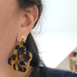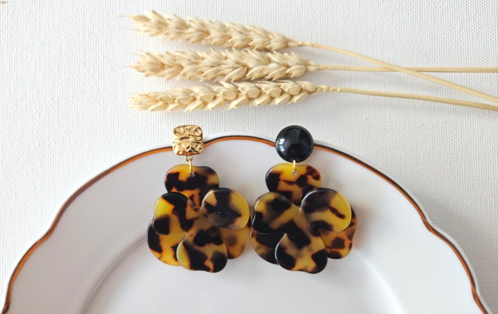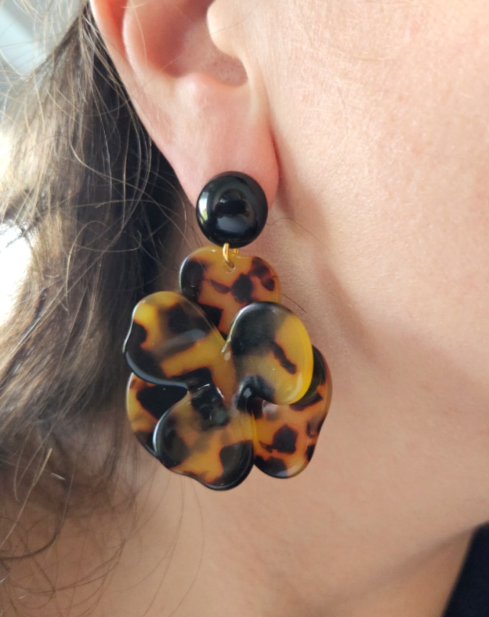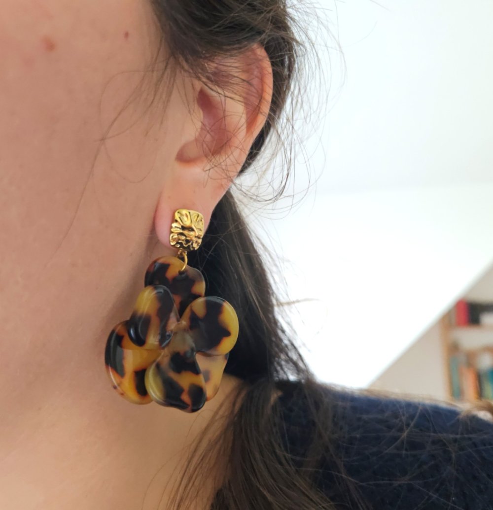 Boucles d'oreilles HORTENSE - fleurs en relief marron noir en acétate esprit vintage