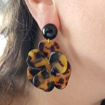 Boucles d'oreilles réalisés avec des pendentifs fleurs en relief en acétate 41 x40 mm marron noir.