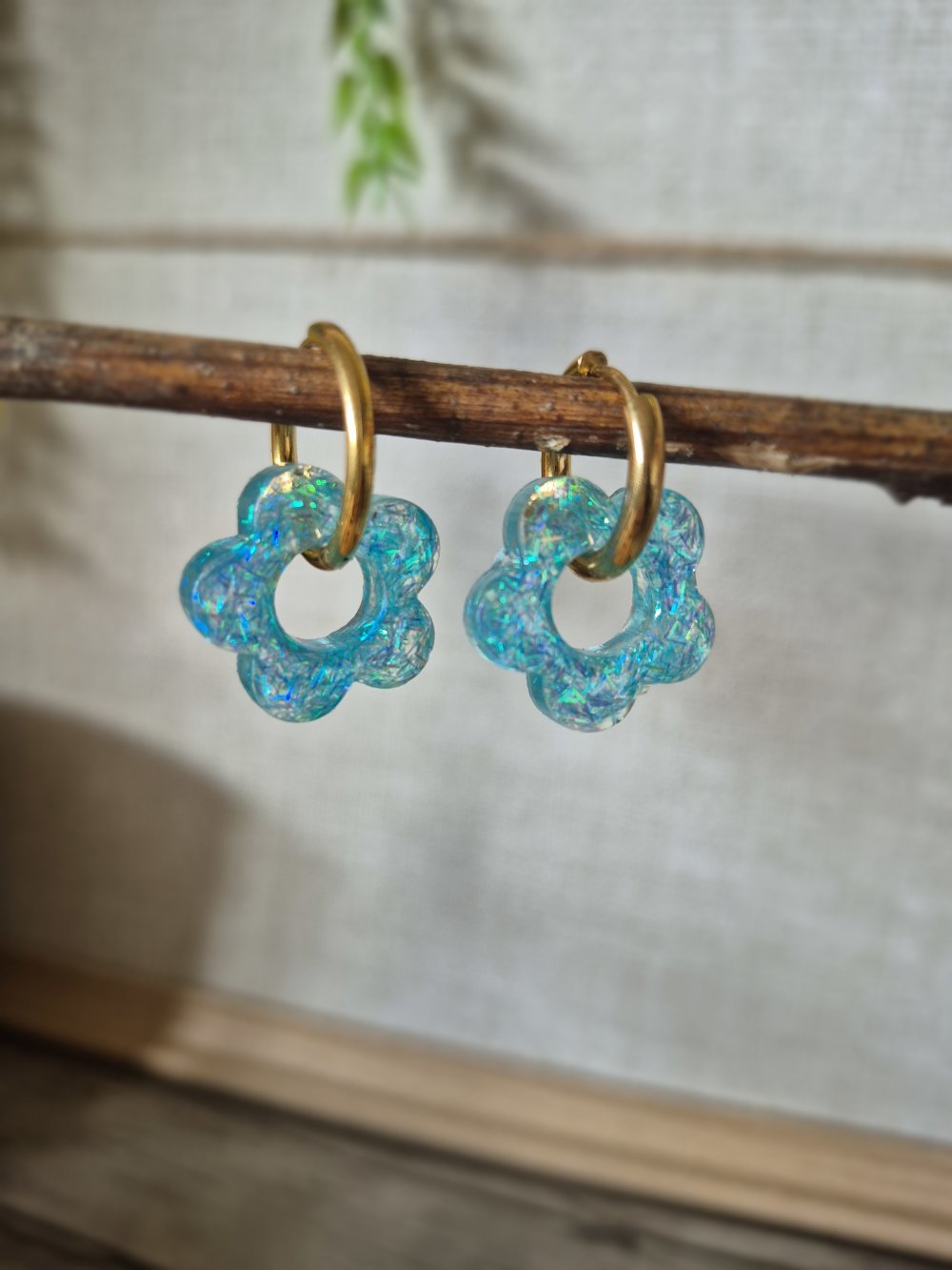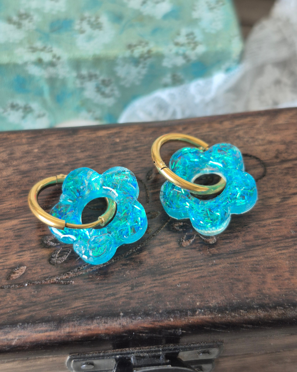 ✳️ Fleurs résine pailletée couleur bleue façonnées main 25 mm