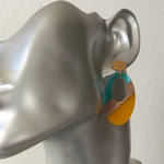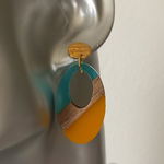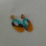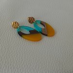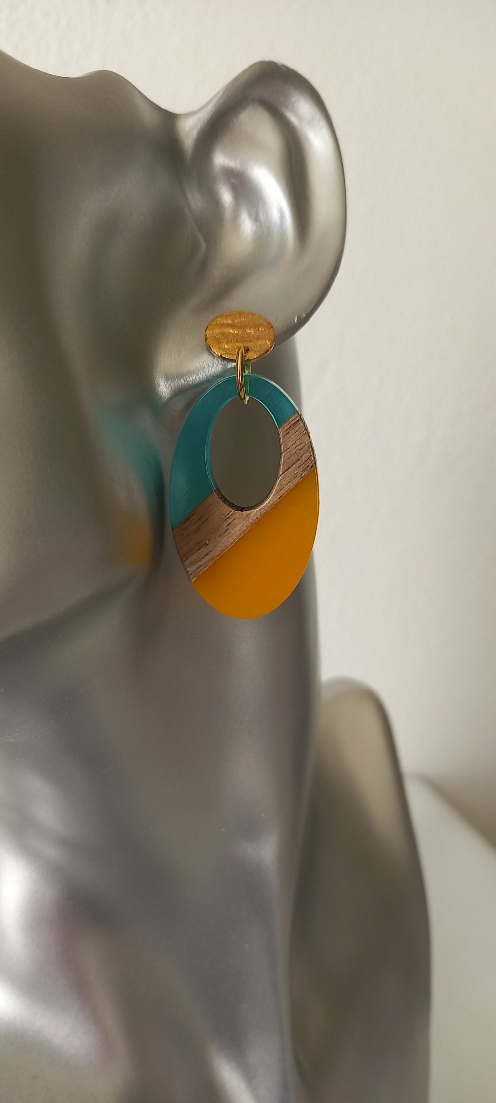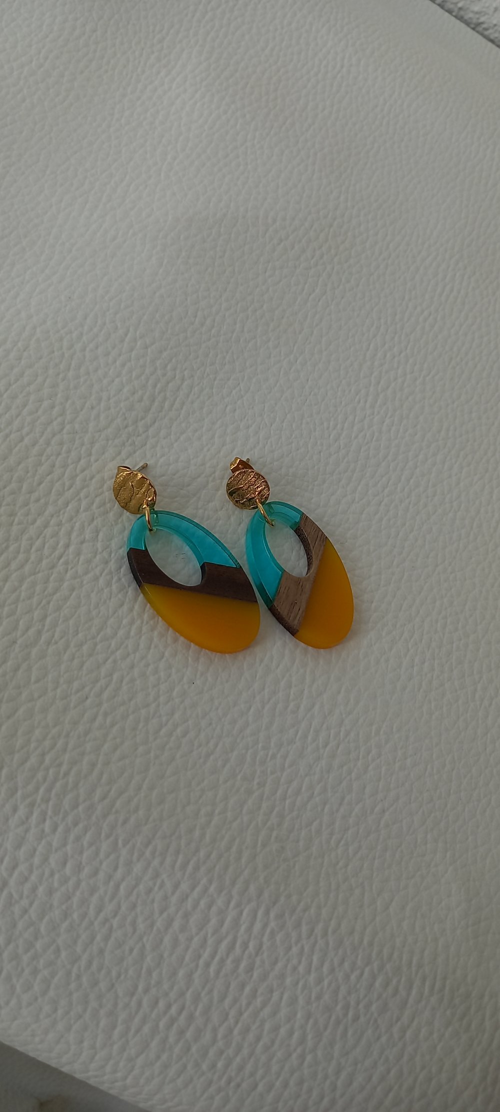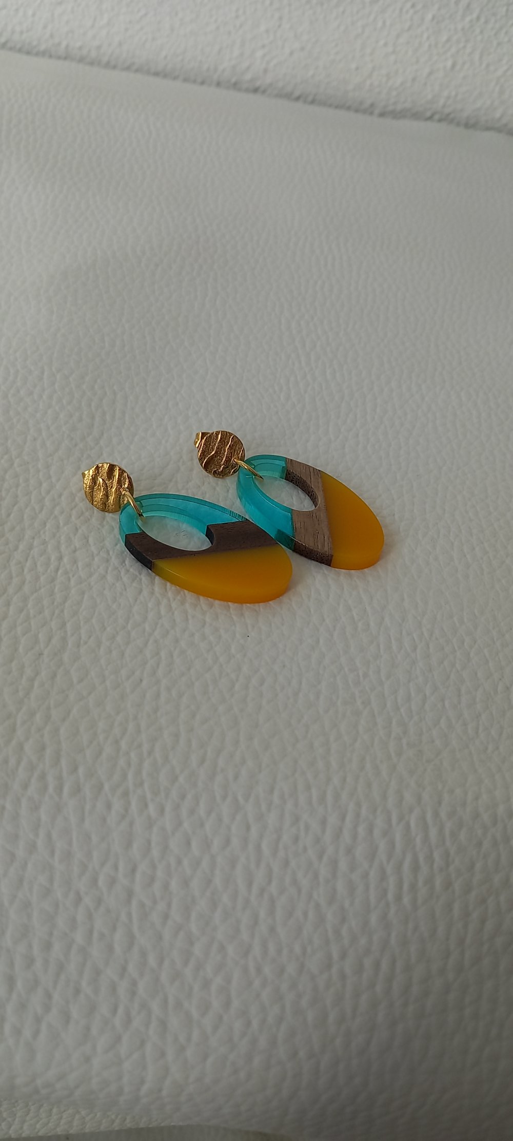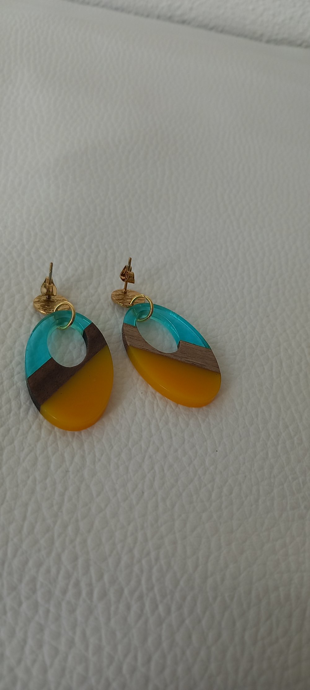 Boucles d'oreilles jaune et bleu en résine, bois, acier