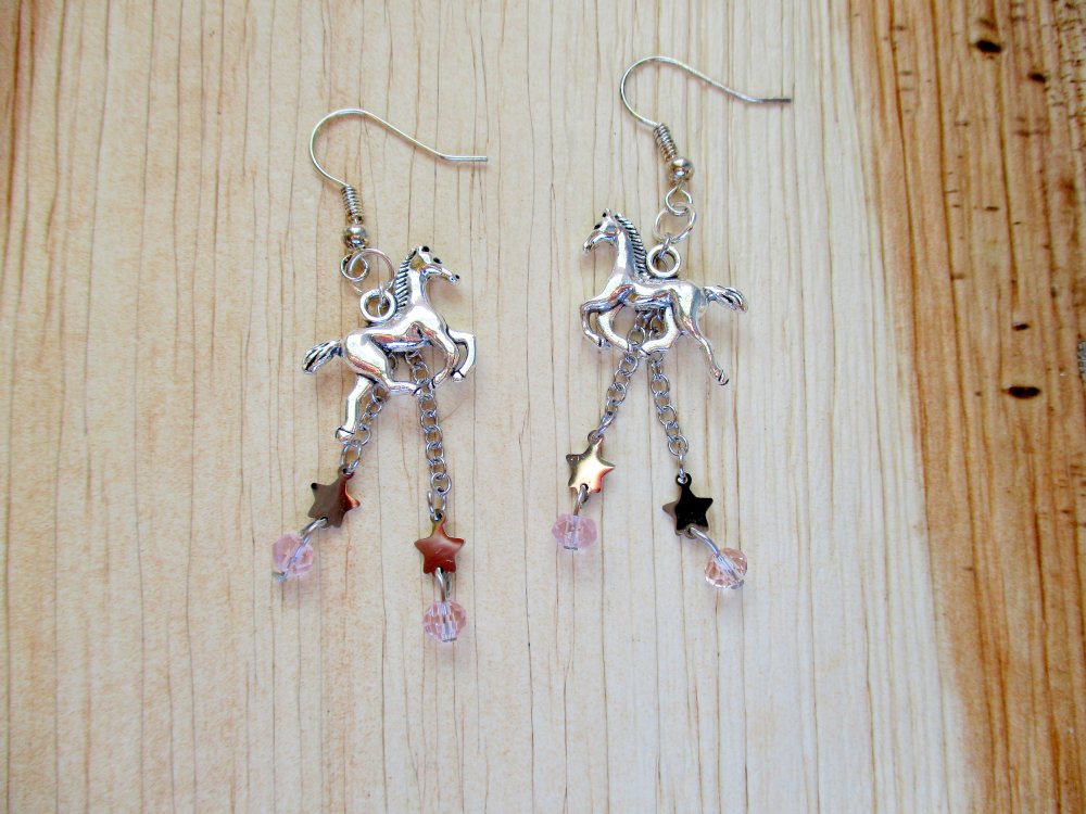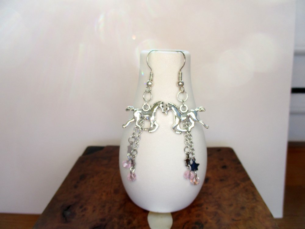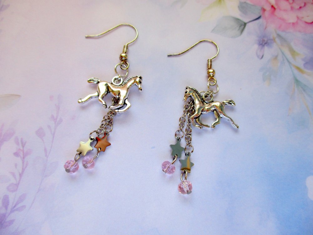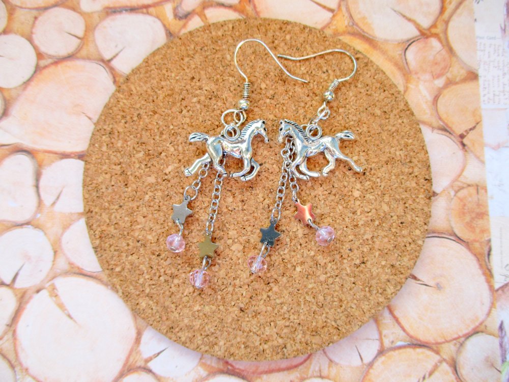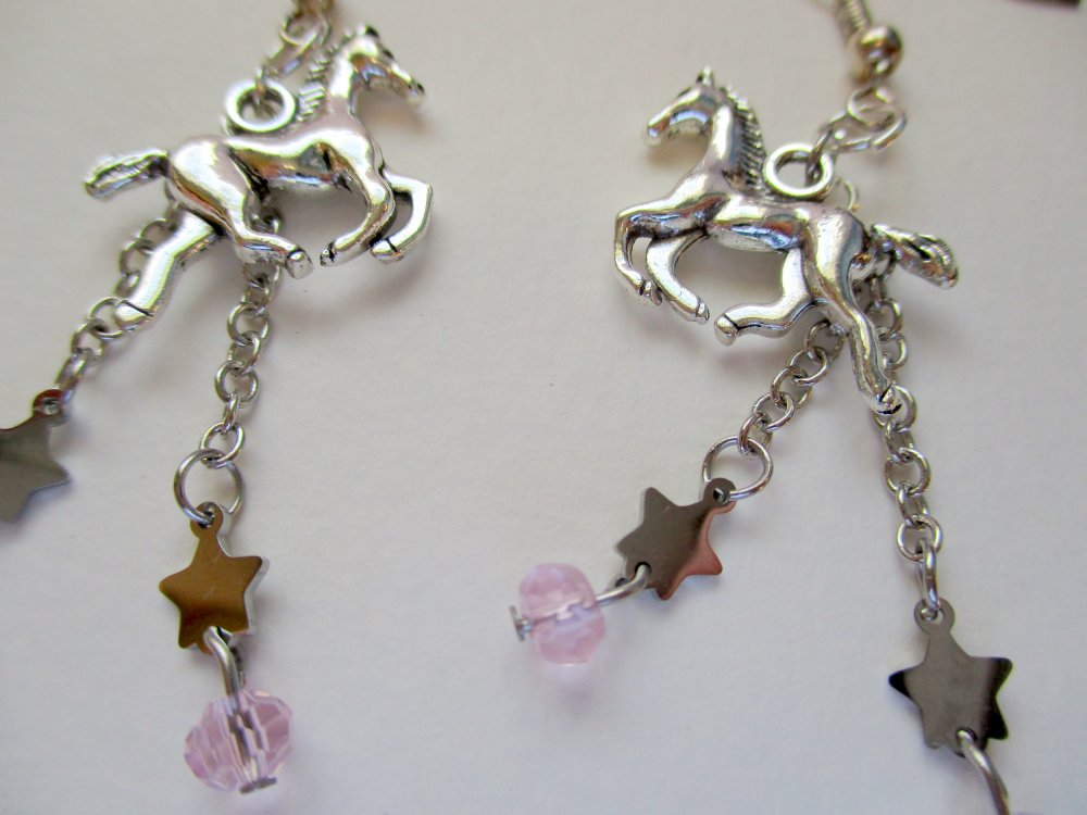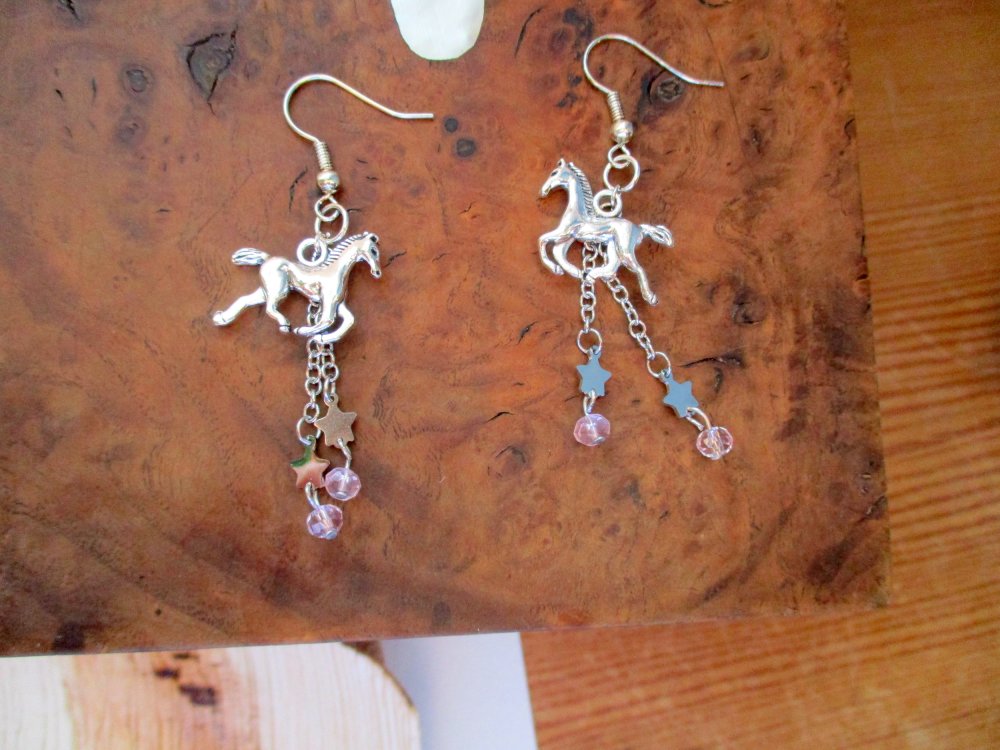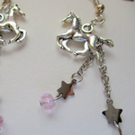 Un cheval. Une étoile et une perle suspendues à une petite chainette cachée derrière la breloque du cheval