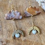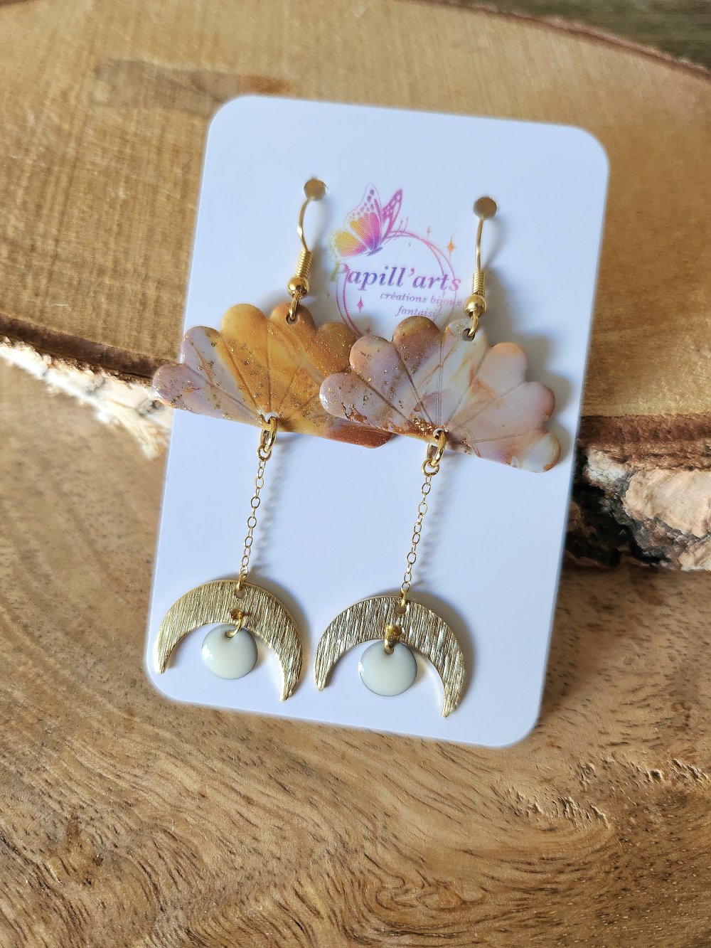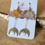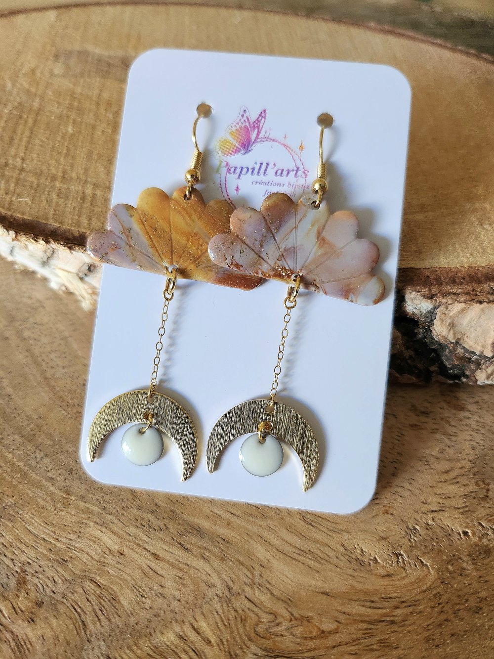 Les petites chaines sont en or gold filled les lunes ainsi que les crochets sont en plaqué or. Les anneaux sont en métal doré.