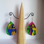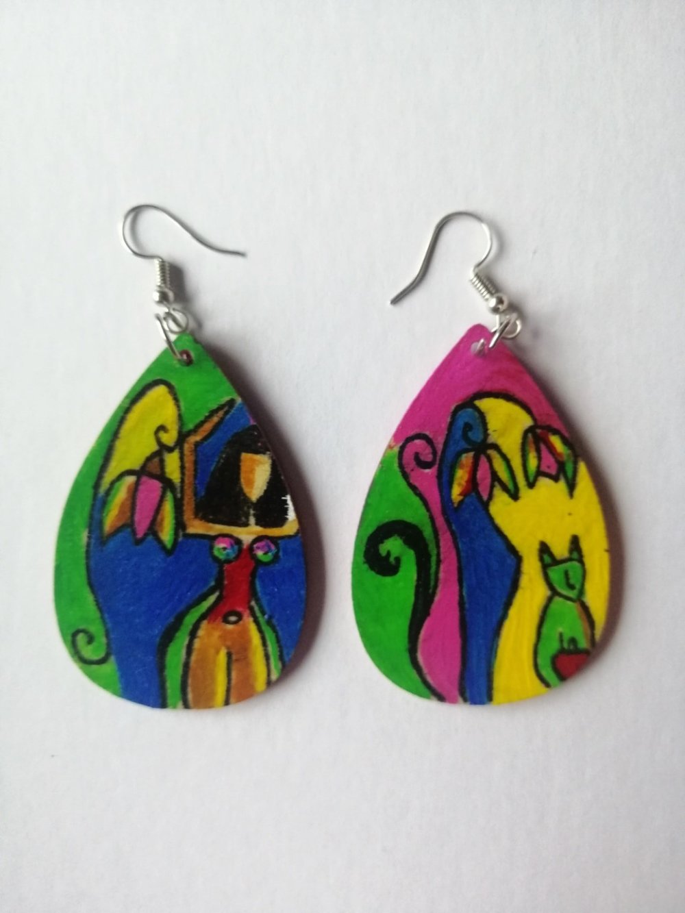 Tableaux et boucles d'oreilles artisanales aux designs originaux.