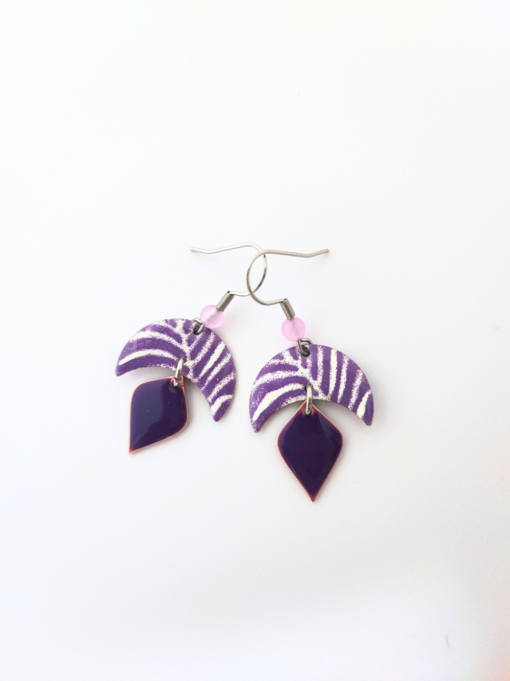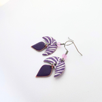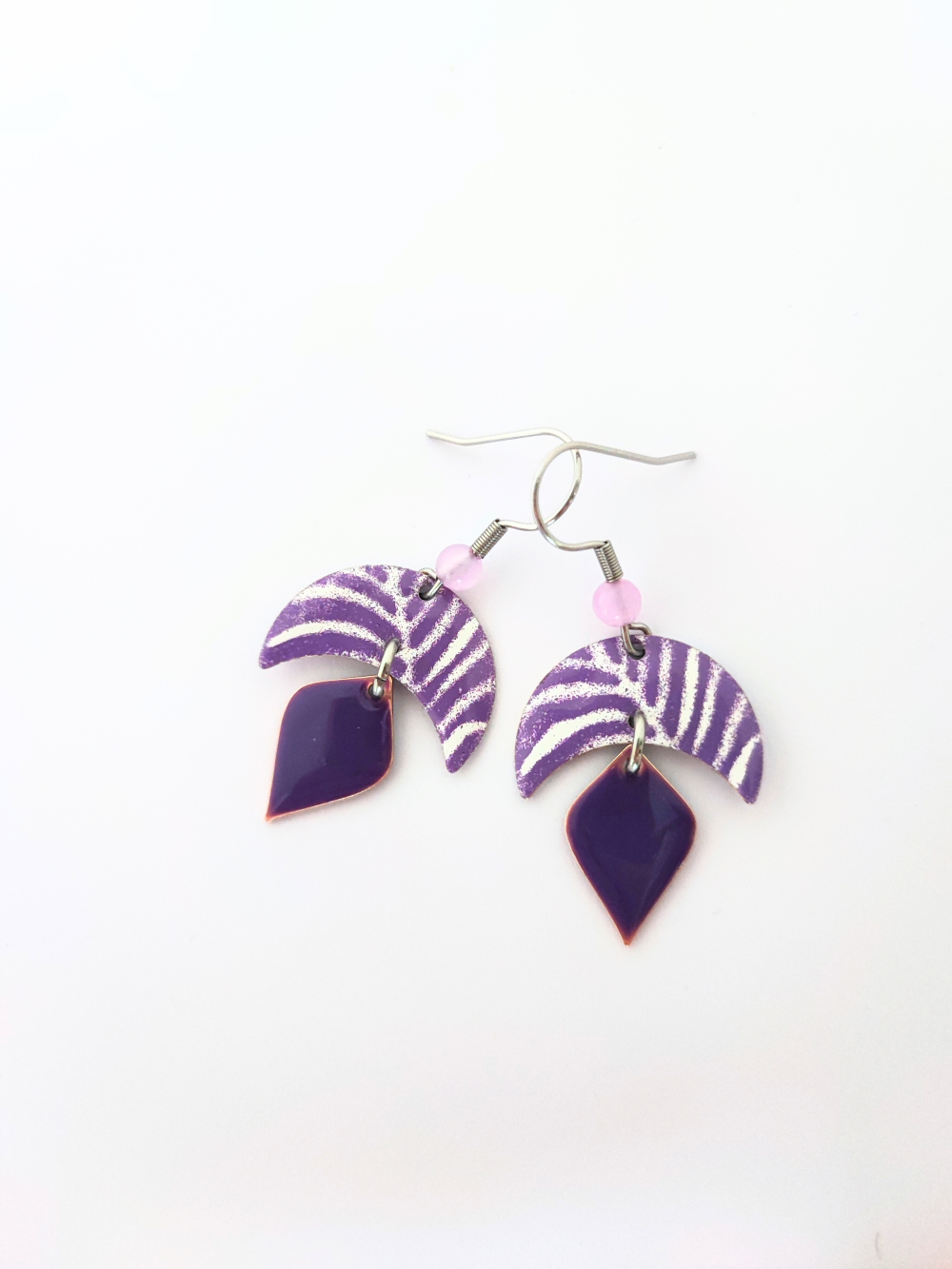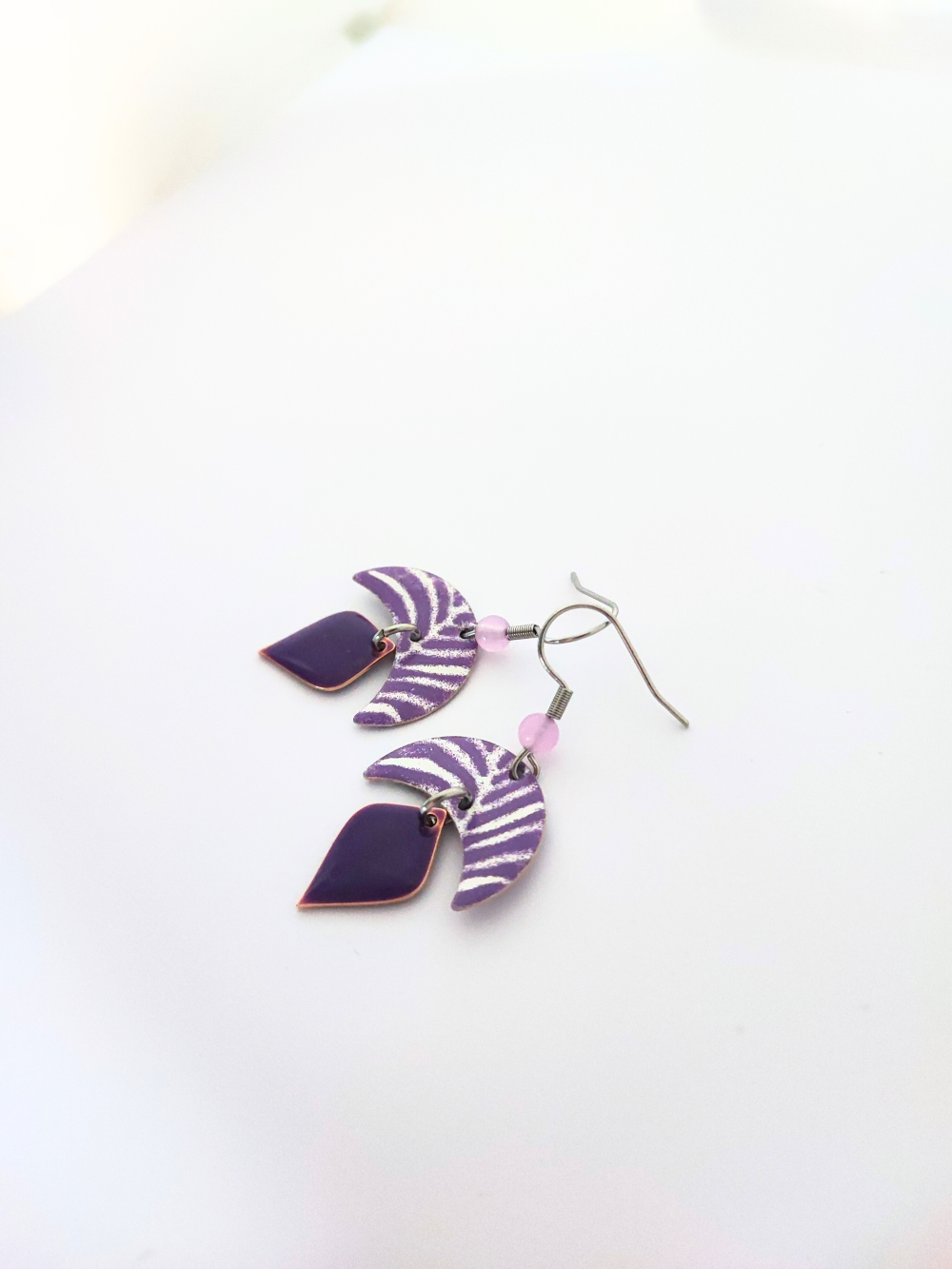 Boucles d'oreilles violettes, graphiques et originales, idée cadeau femme