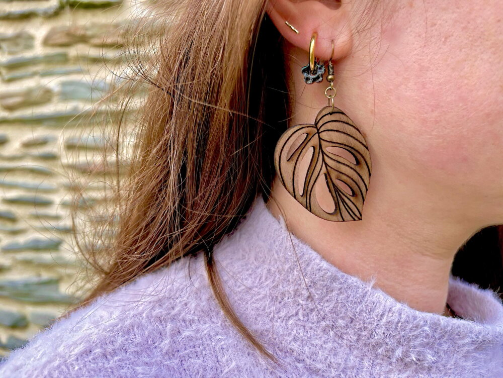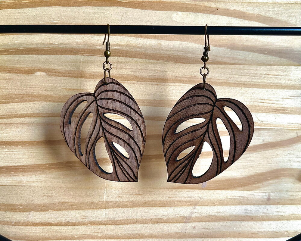 Boucles d’oreilles monstera - En bois de noyer / Fait main