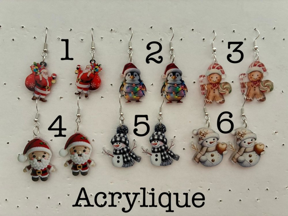 boucles d oreilles noel fantaisie acrylique