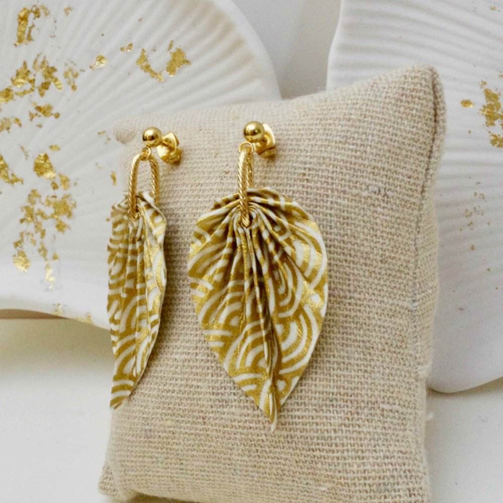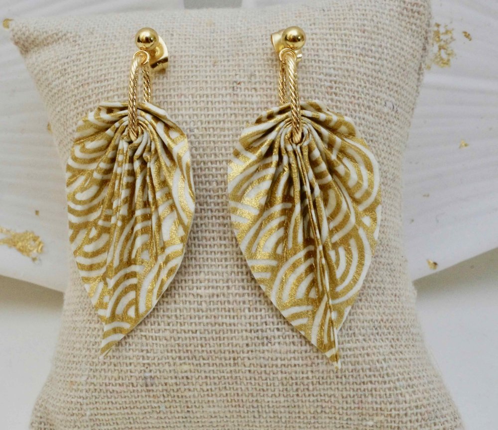 Boucles d’oreilles origami, Bijoux Feuilles dorés et en acier