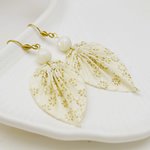 Boucles d'oreilles feuilles origami faites dans les traditions japonaises avec du papier washi aux nuances blanc fleuri.