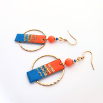 Boucles d'oreilles originales & festives, en acier inoxydable et émail bleu et orange.