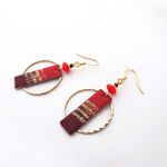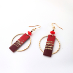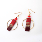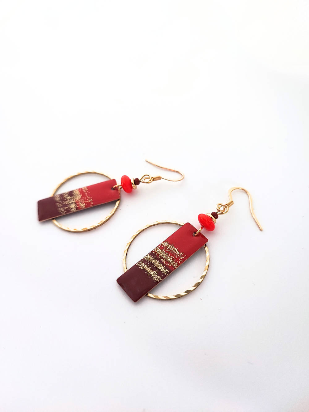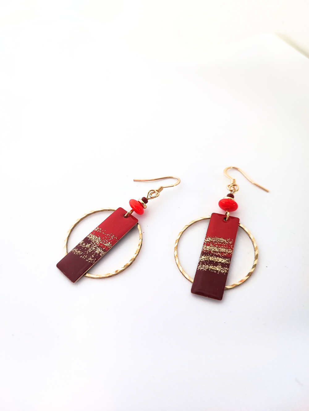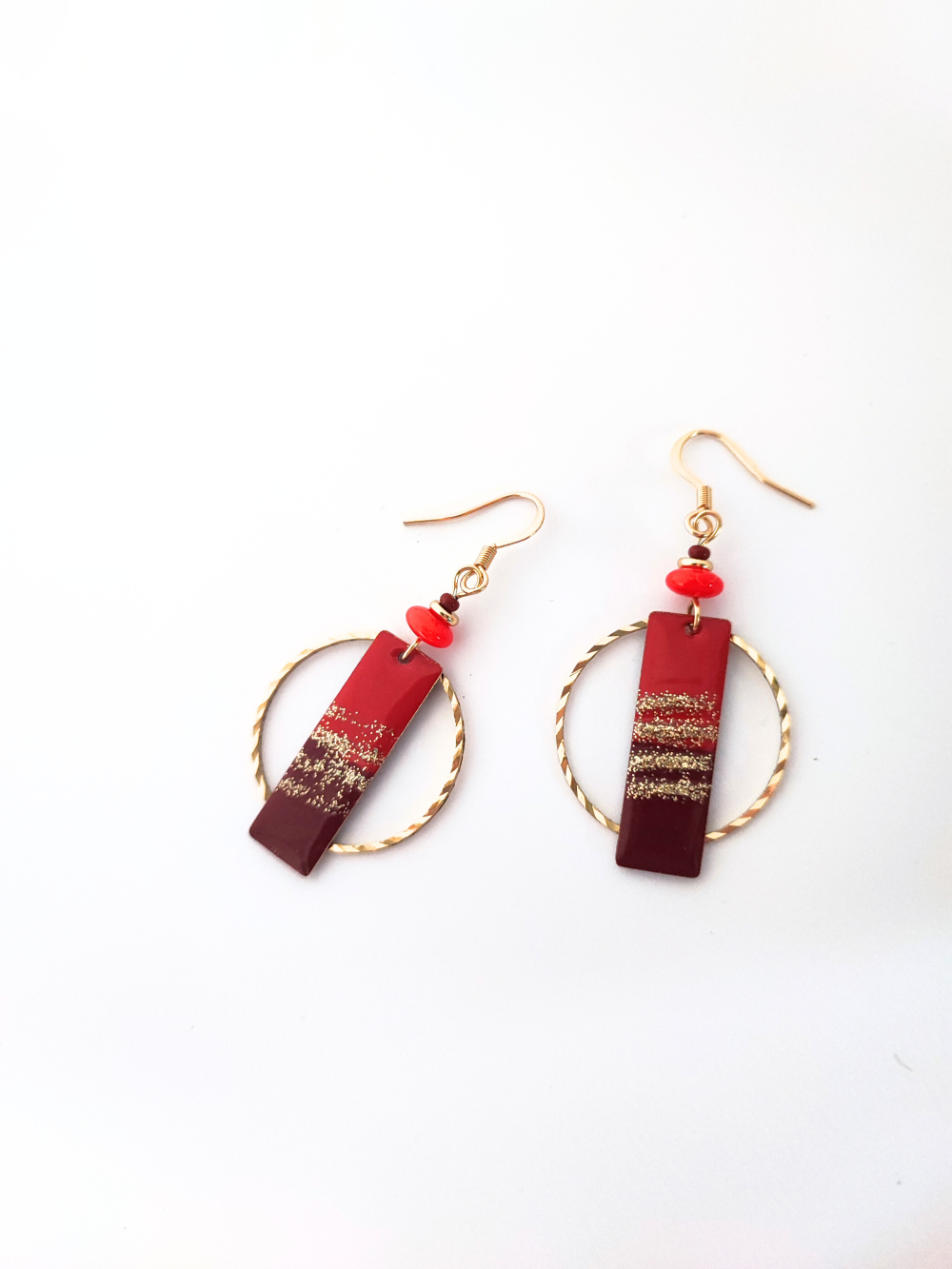 Boucles d'oreilles originales et festives, rouge et doré, idée cadeau femme