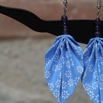Boucles d'oreilles fantaisies femme, papier japonais et améthyste