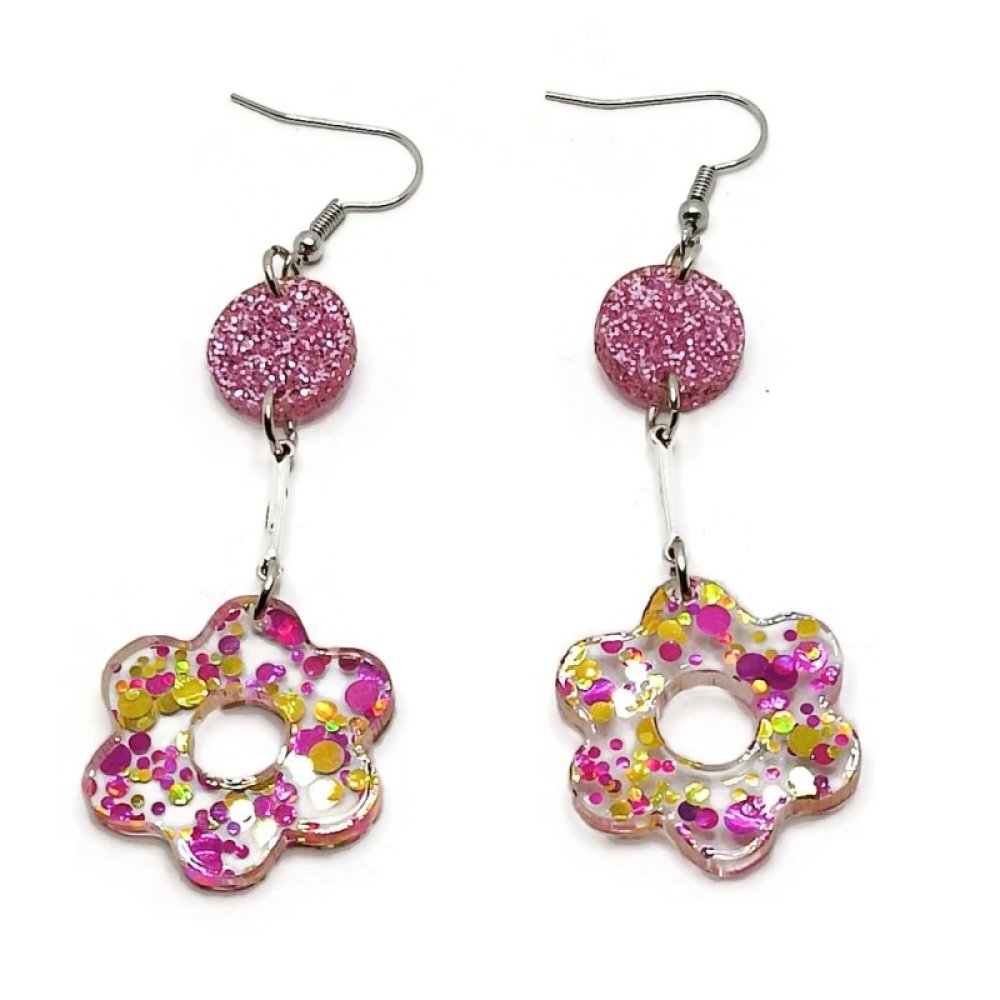 boucles d'oreilles paillettes multicolore Fleur, légère