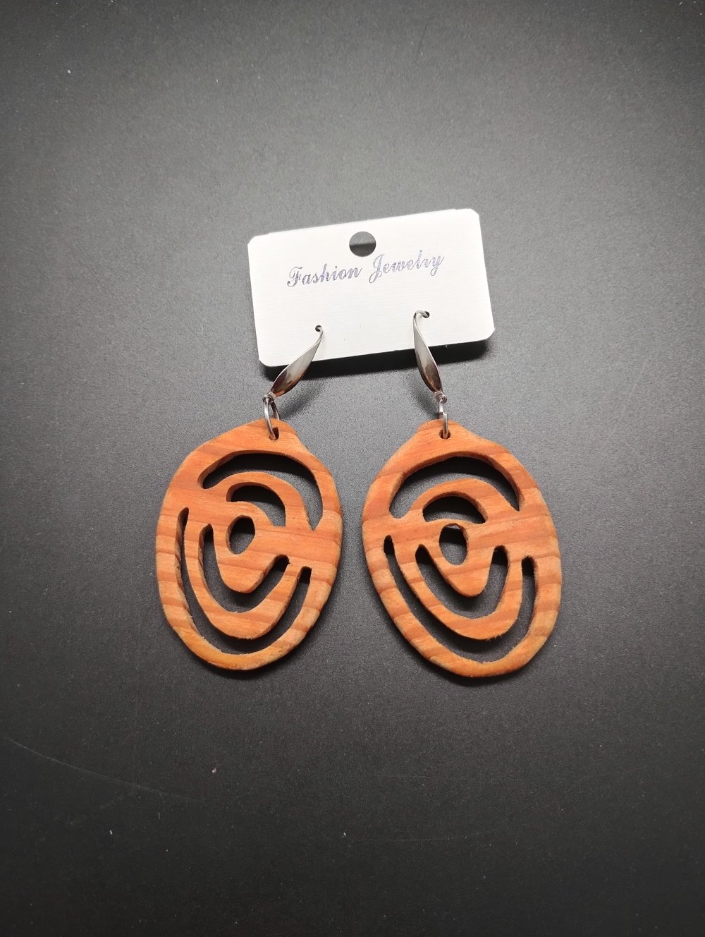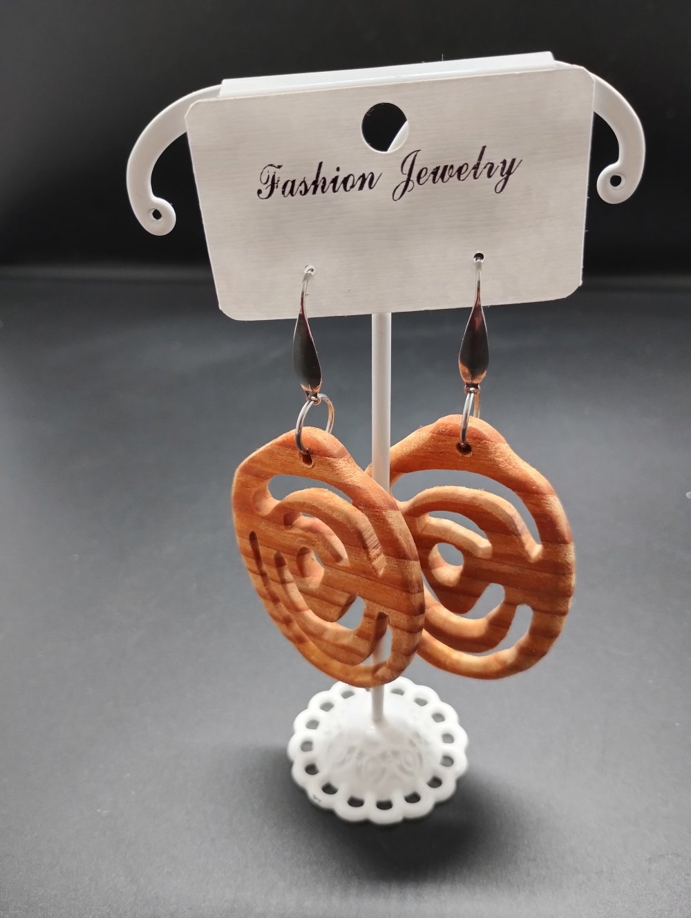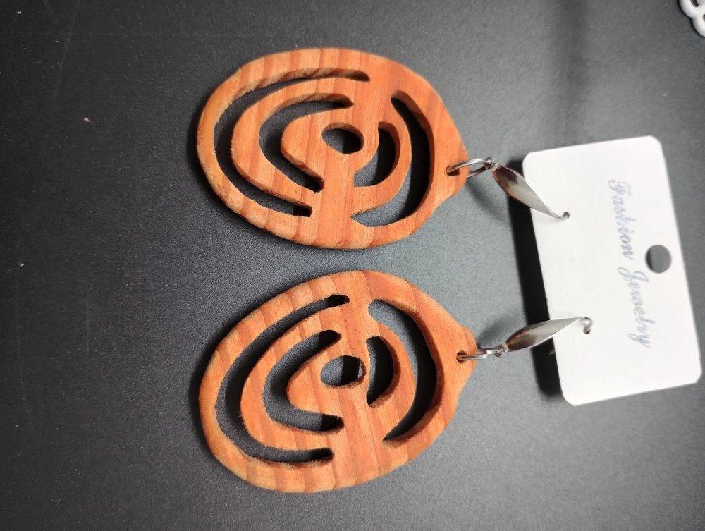 Boucles d'oreilles pendantes en bois ( douglas) découpées à la scie à chantourner