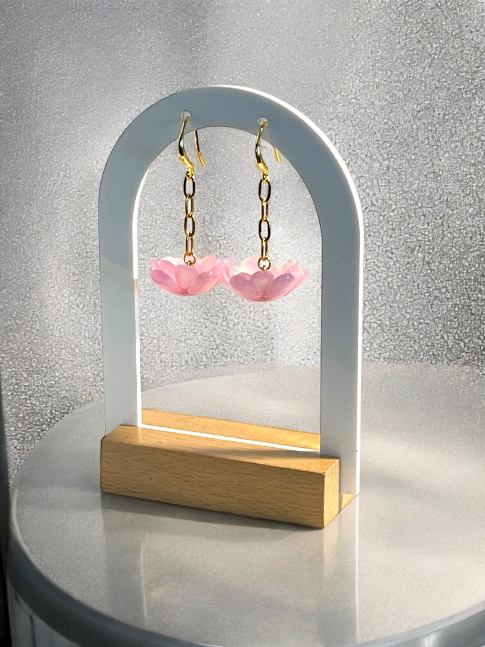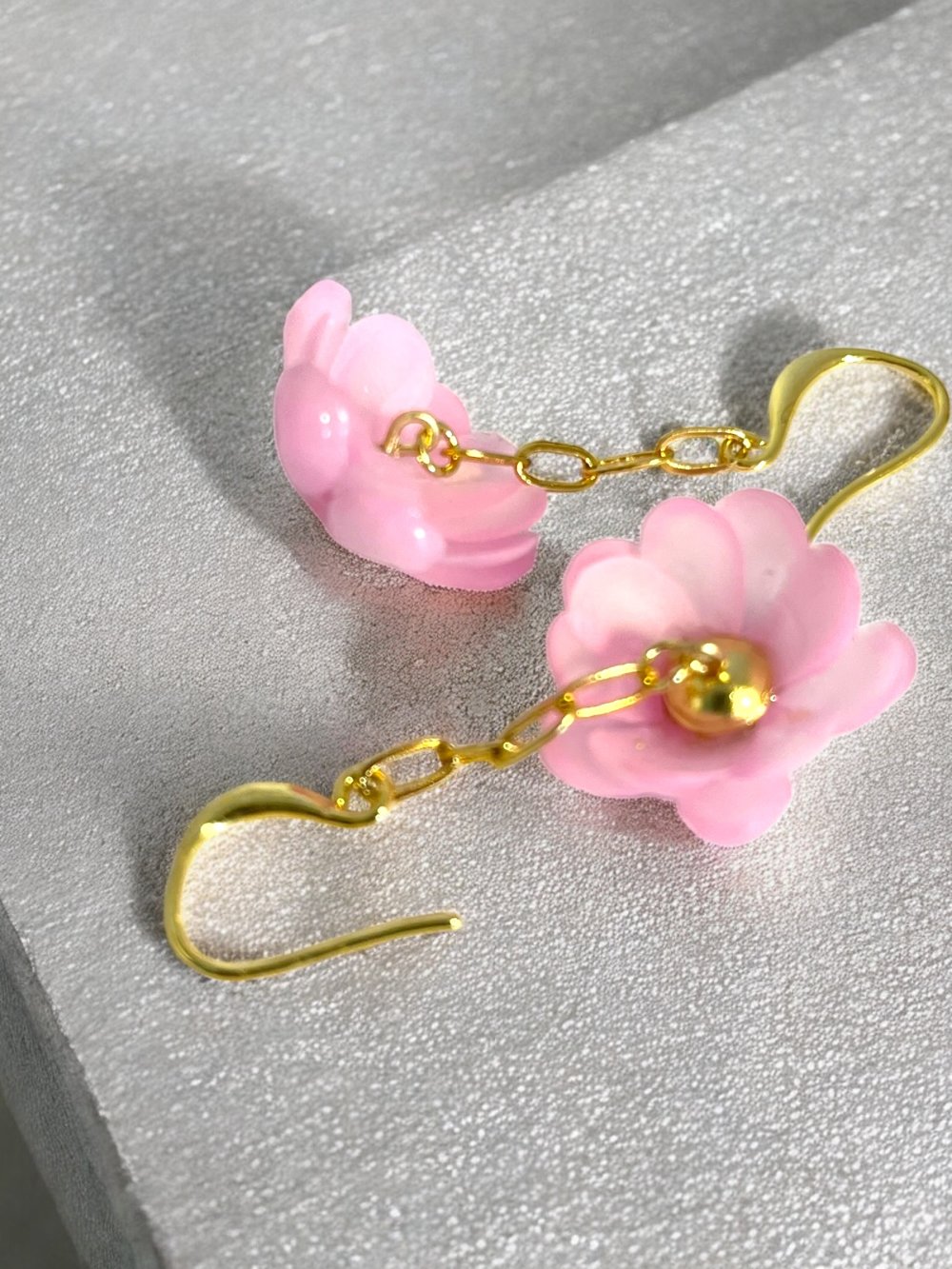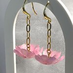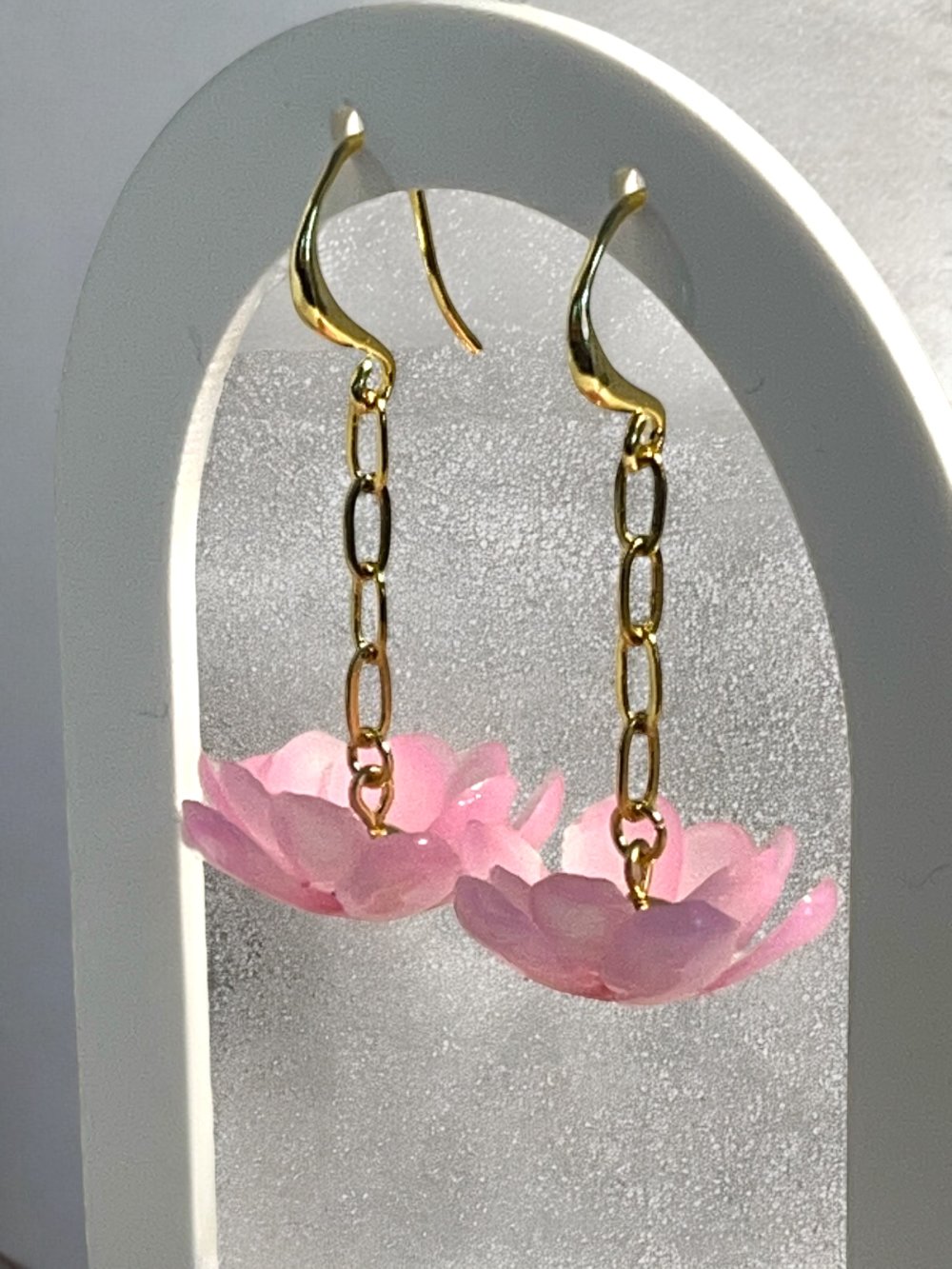 Douces et féminines, ces boucles d’oreilles en forme de fleur lotus rose pastel illuminent le visage d’un éclat délicat. Chaque pétale est façonné à la main en résine, suspendu à une chaîne dorée pour un style raffiné et romantique.