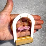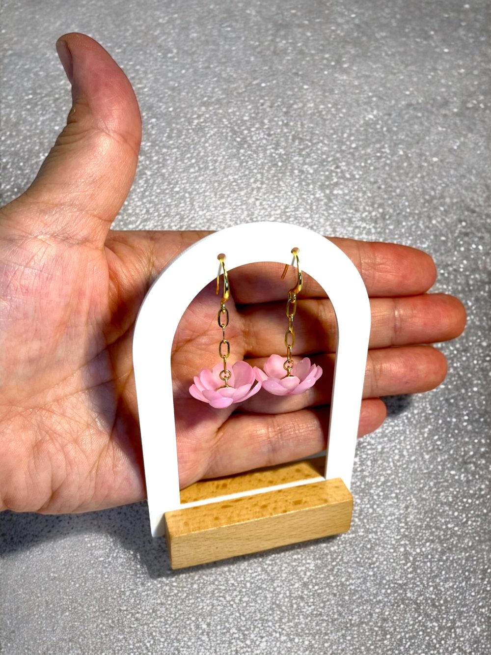 Ces boucles d’oreilles fleur lotus rose pastel incarnent la délicatesse et la féminité. Réalisées à la main dans une résine écologique teintée de nuances rosées, elles se distinguent par leurs pétales doux et leur centre doré lumineux.