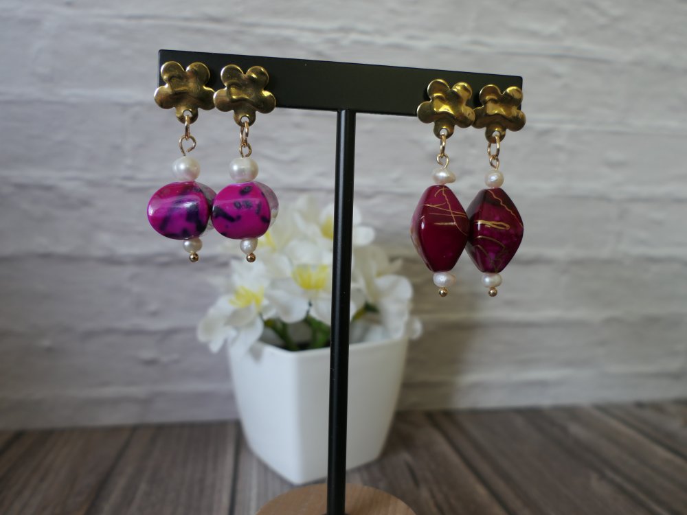 Modèle 1 : Perles en acrylique rose fuchsia marbré de noir – audacieuses et modernes