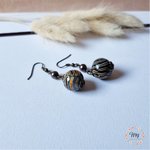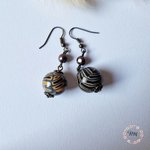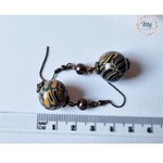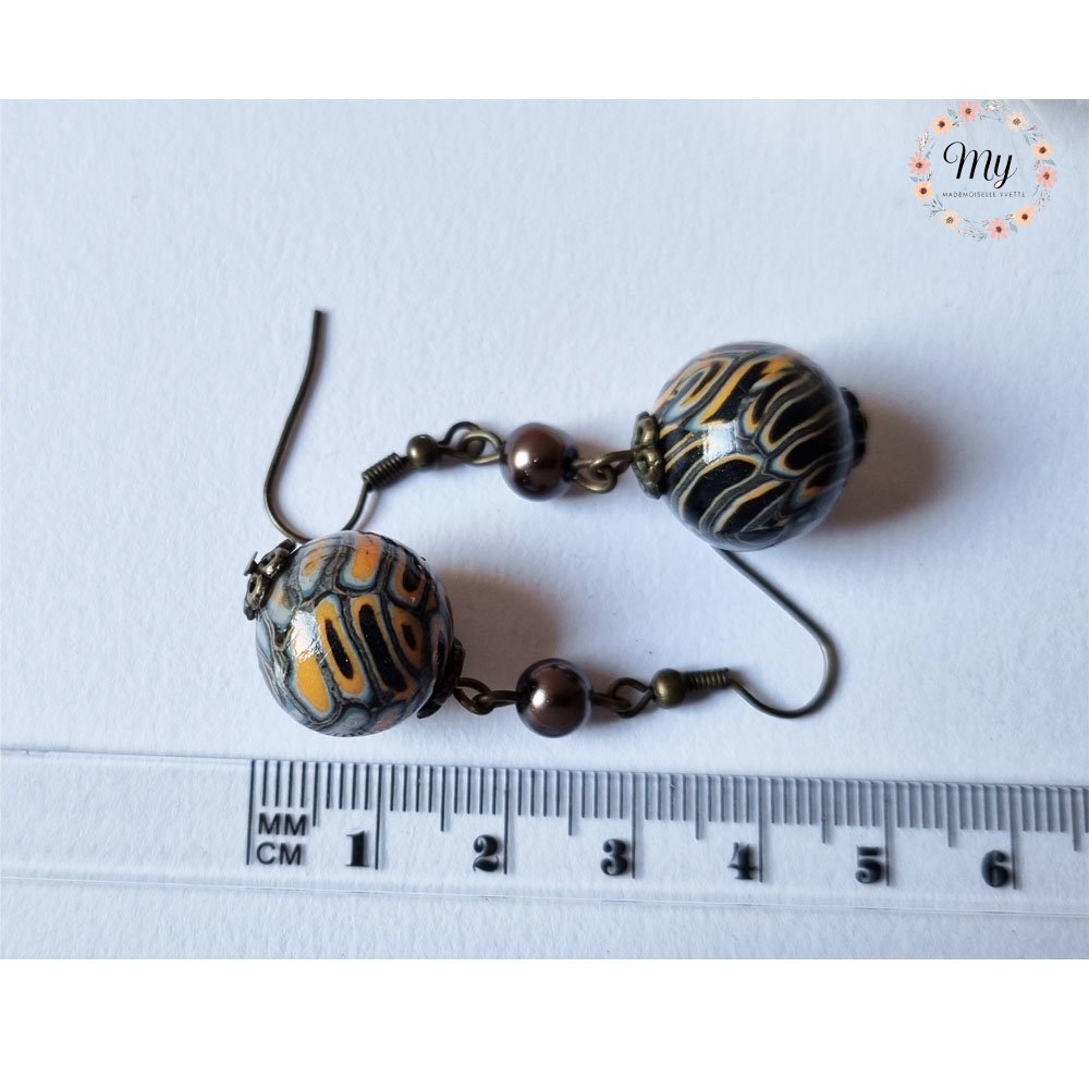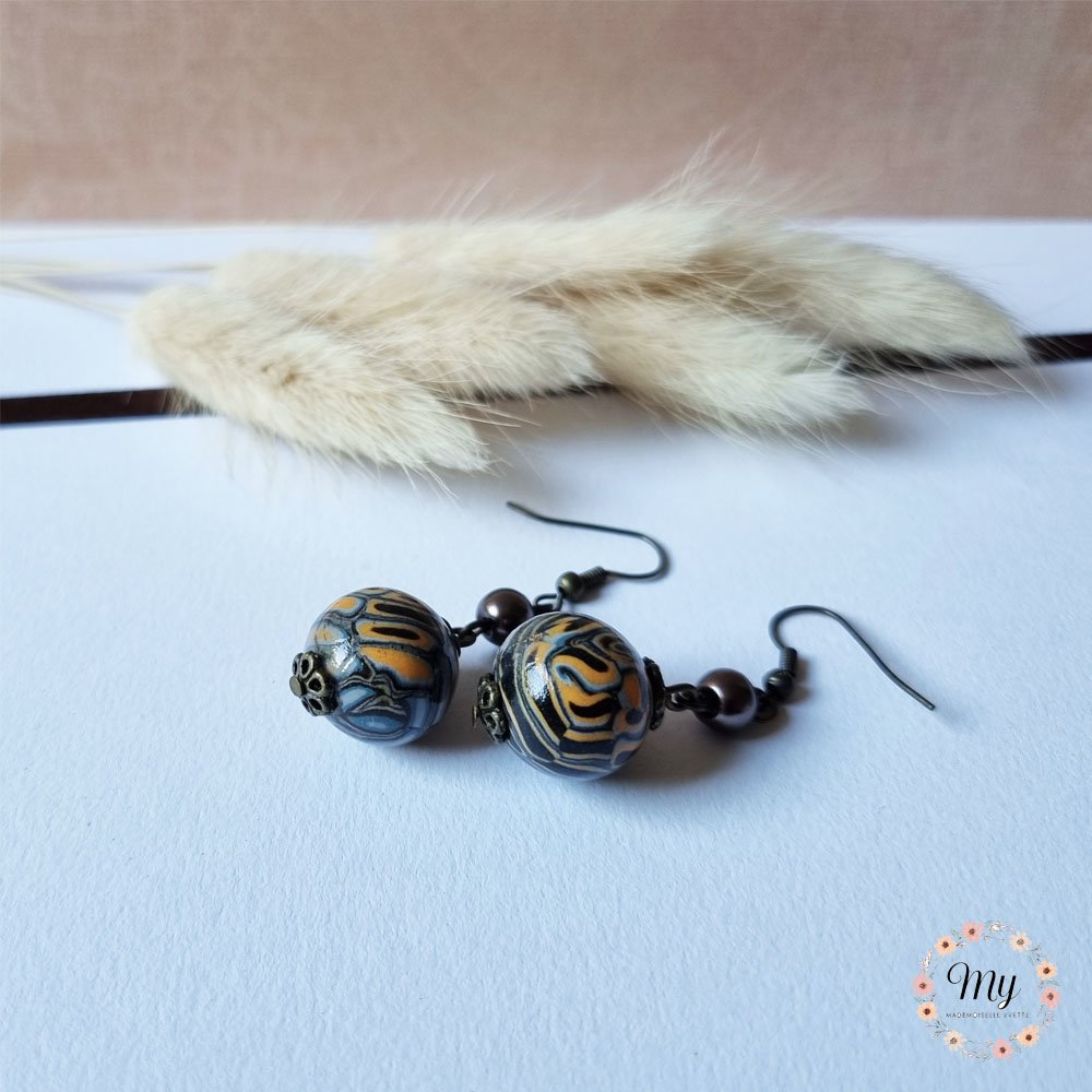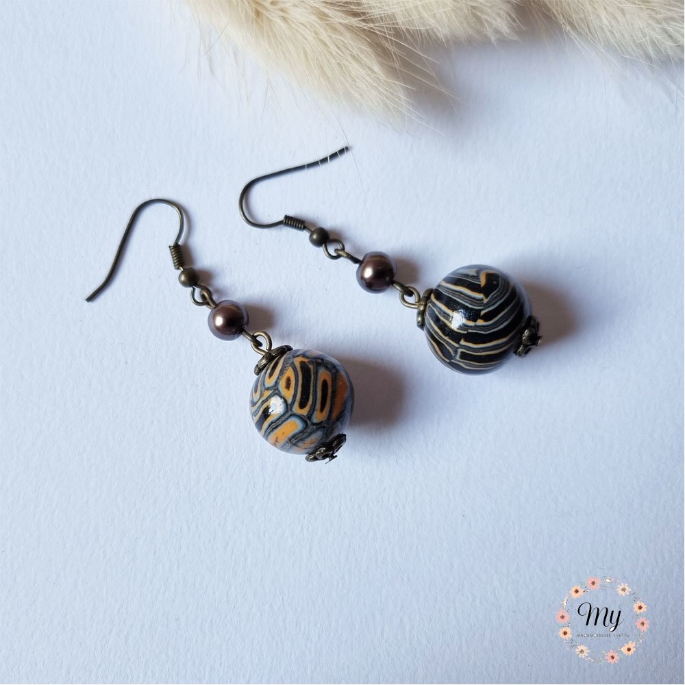 Boucles d'oreilles pendantes noires et orange, en argile polymère et métal bronze