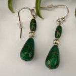 Boucles d'oreilles pendantes aux perles ovale et goutte nuancées vert/doré avec perle lanterne et apprêts en métal argenté
