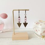 Boucles d'oreilles pendantes avec pendentif triangle en métal, perles en verre colonne et apprêts de couleur bronze