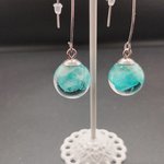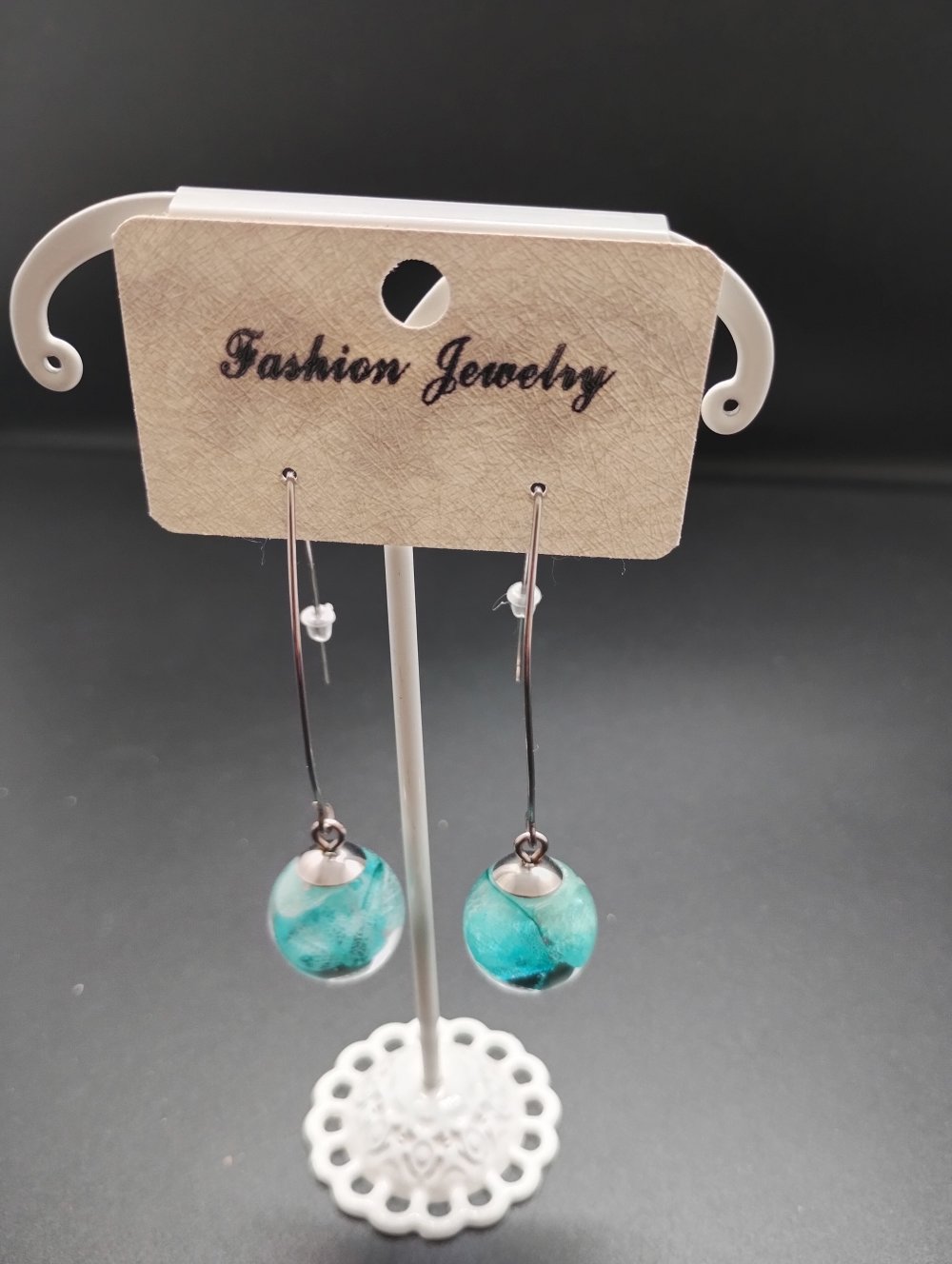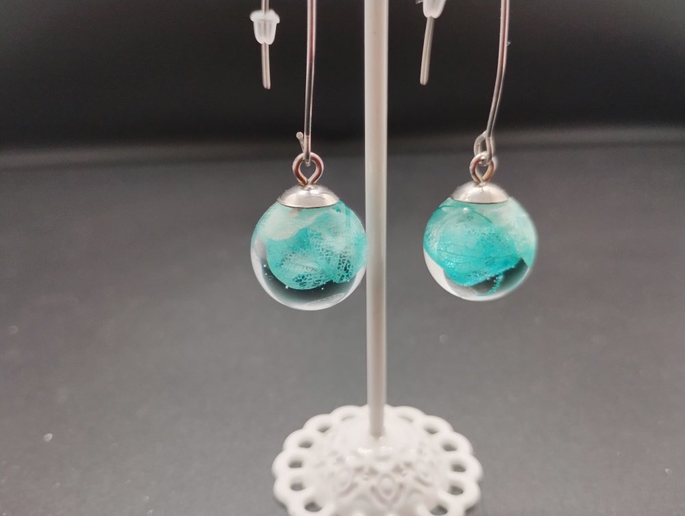 boucles d'oreilles perles en résine / perle fleurs bleues 12 mm
