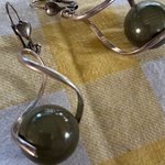 Cette paire de boucles d'oreilles est composée d'un support de boucles d'oreilles en forme de spirale en métal argenté garanti sans nickel et de deux perles magiques rondes en vert (perles laquées)
