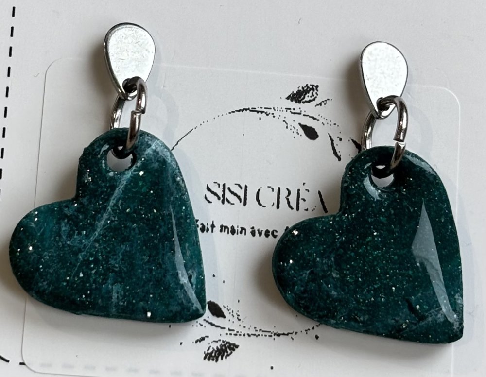 Boucles d’oreilles en pâte polymère recouvert de résine UV et acier inoxydable
