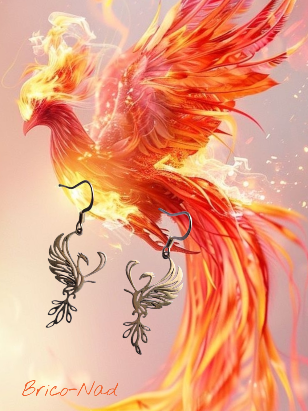 🕊️✨ Boucles d’oreilles « Phoenix » — Crochet en acier inoxydable