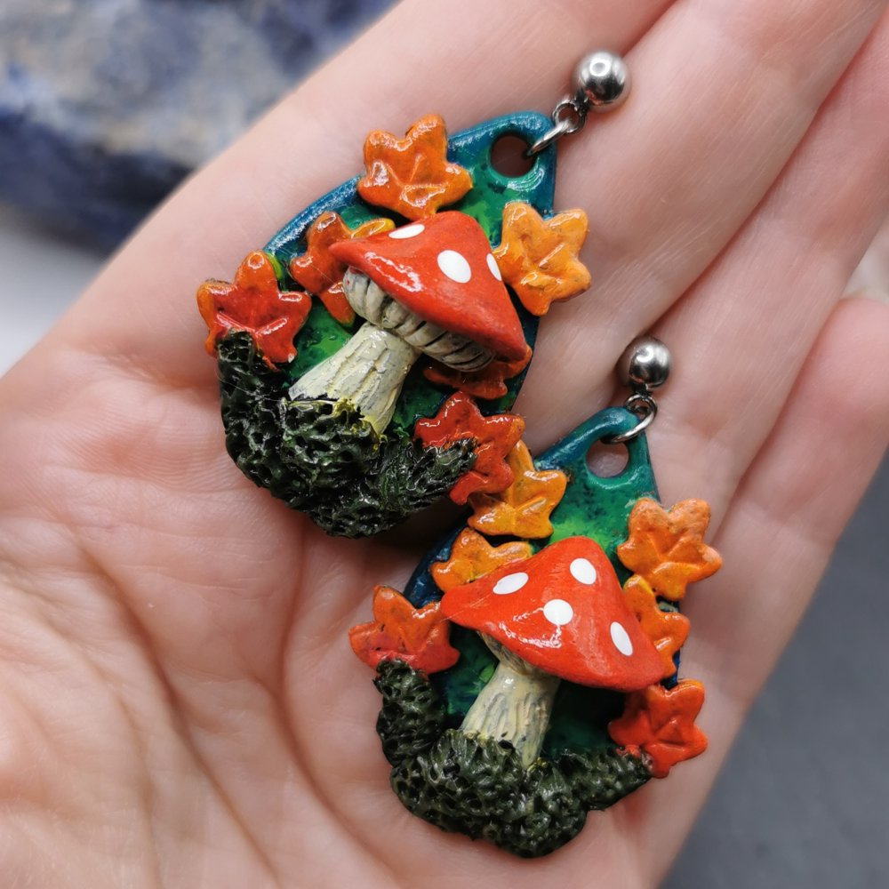 Amoureux de balade bucolique et de champignons voici une paire de boucle d'oreilles qui vous permettra d'emmener un bout de nature même au cœur de la ville !