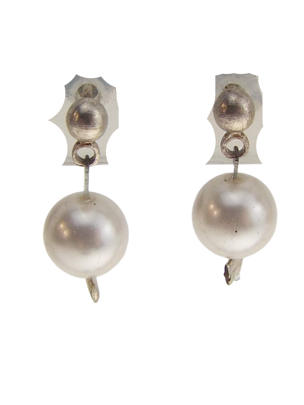 1 paire de boucles d'oreilles puce blanc nacré. - Bijoux mariage - Composé de ronde nacré 6 mm en cristal autrichien, sur fil câblé argenté. Garantit sans nickel.