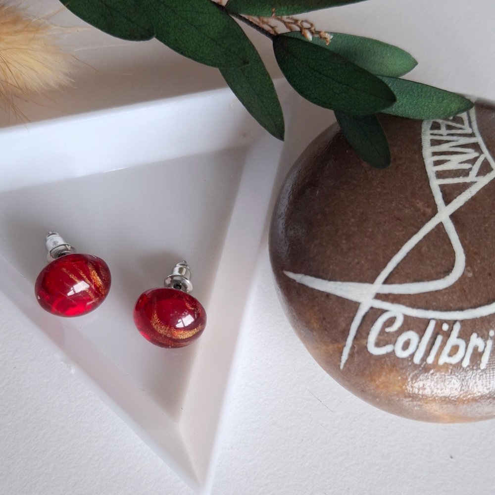 Voici une paire de puces d'oreilles en acier inoxydable composée de cabochons en résine de 12mm bordeaux nacré.