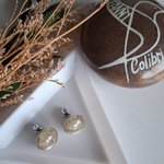 Voici une paire de puces d'oreilles en acier inoxydable composée de cabochons en résine de 12mm avec de jolies paillettes.