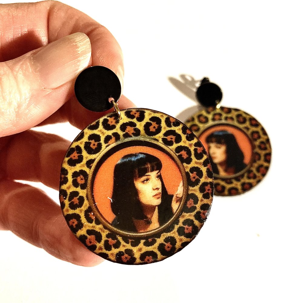 Boucles d’oreilles rondes en bois motif mia Wallace