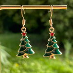 Boucles d’oreilles sapin de Noël, boucles d'oreilles avec sapin, boucles d'oreilles pour Noël, bijou de fêtes