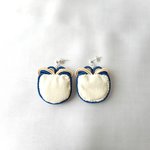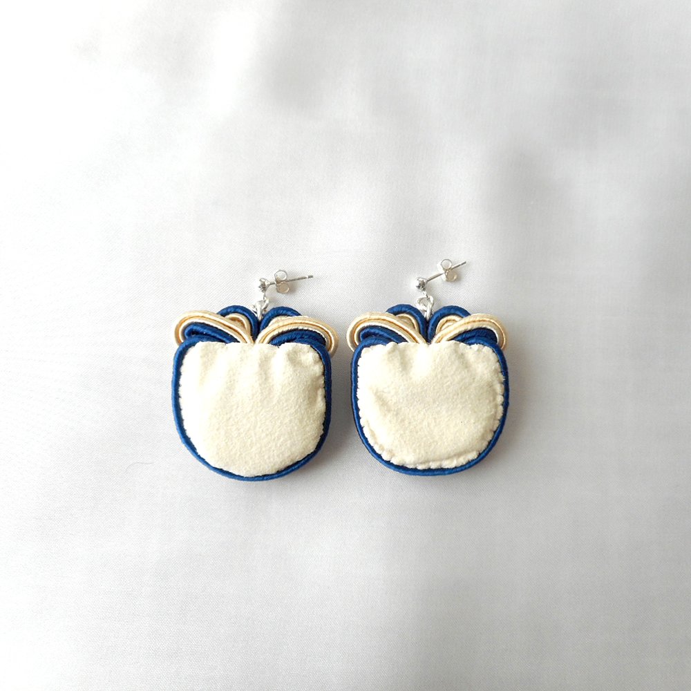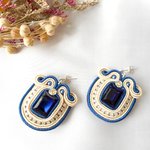 Plongez dans l'élégance avec nos boucles d'oreilles cousues main en soutache bleu marine et crème.