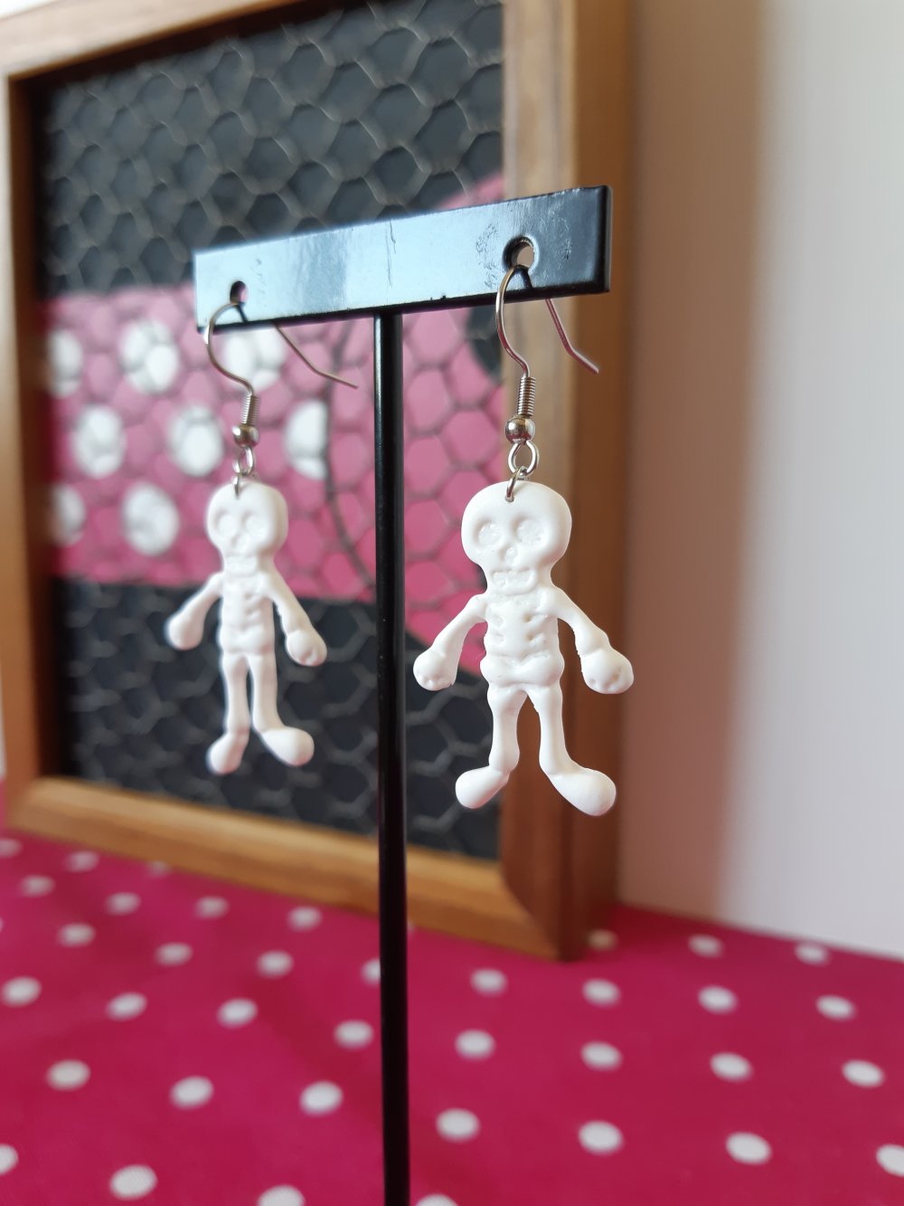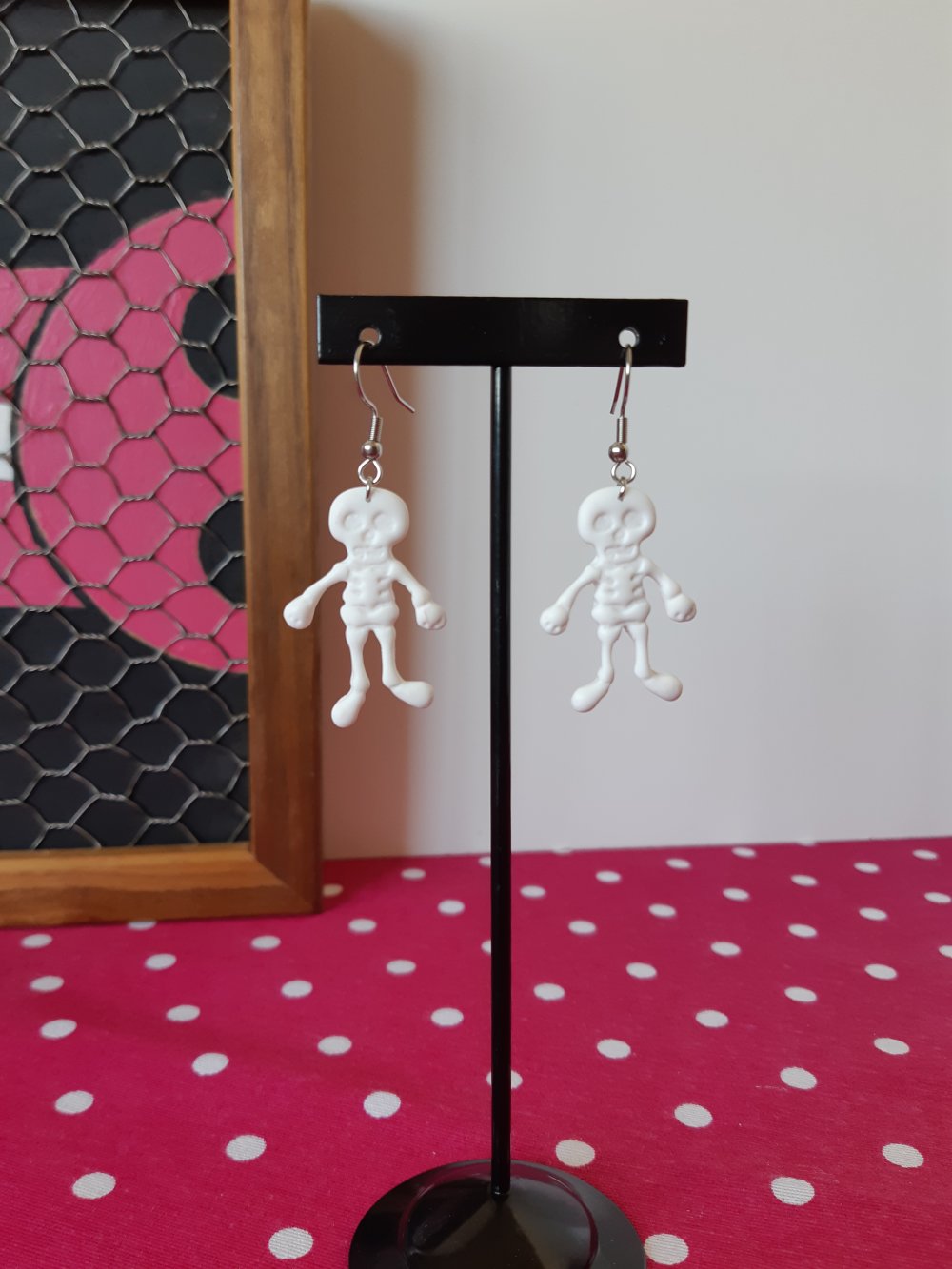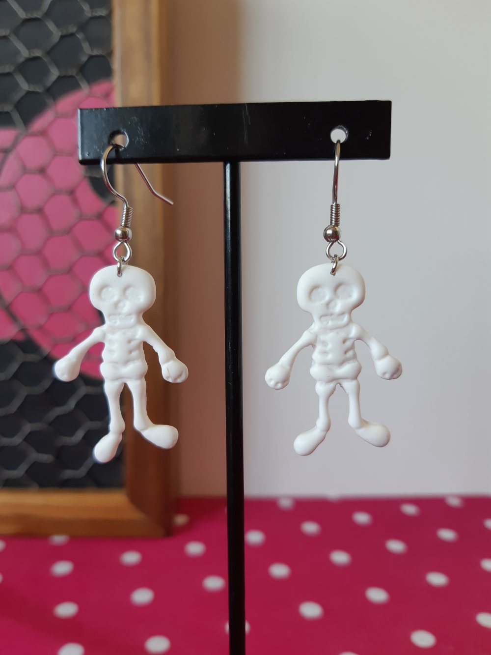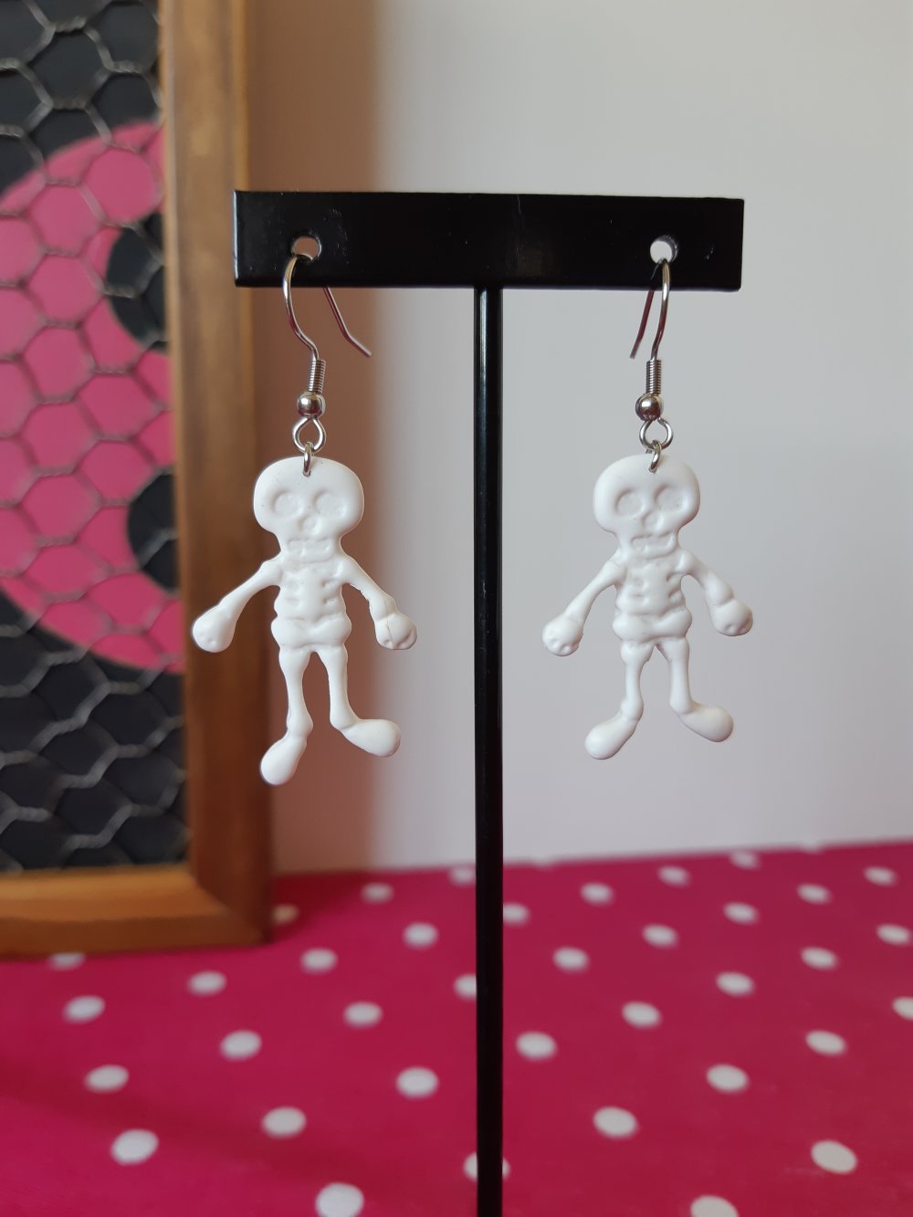Jolies et creepy boucles d'oreilles en forme de squelettes sur crochet en acier inoxydable , originales et légères, elles sont superbe a portées !