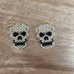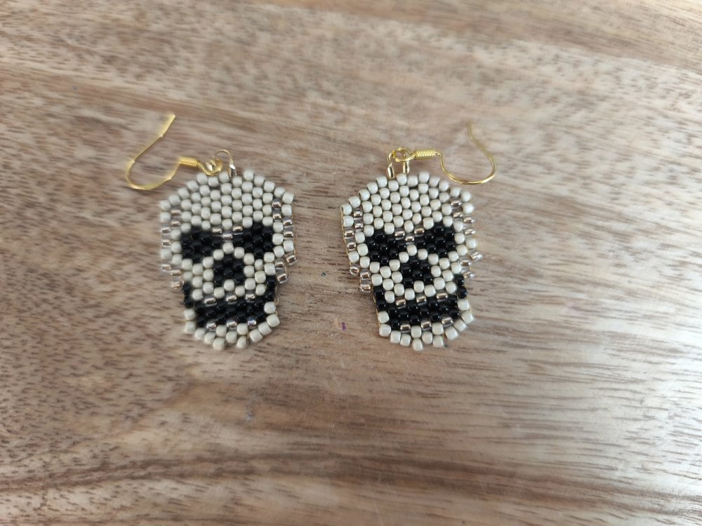 Ajoutez une touche originale et audacieuse à votre style avec cette paire de boucles d’oreilles têtes de mort entièrement tissées à la main.