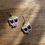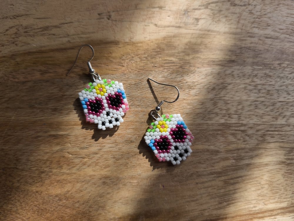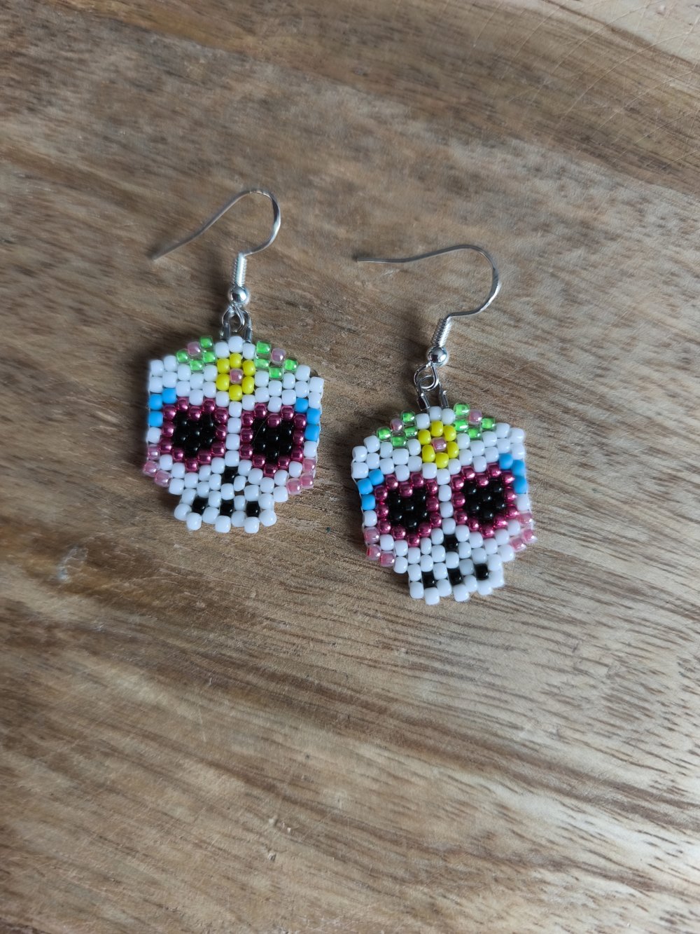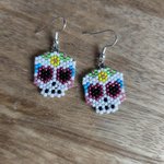 Ajoutez une touche originale et audacieuse à votre style avec cette paire de boucles d’oreilles têtes de mort entièrement tissées à la main.