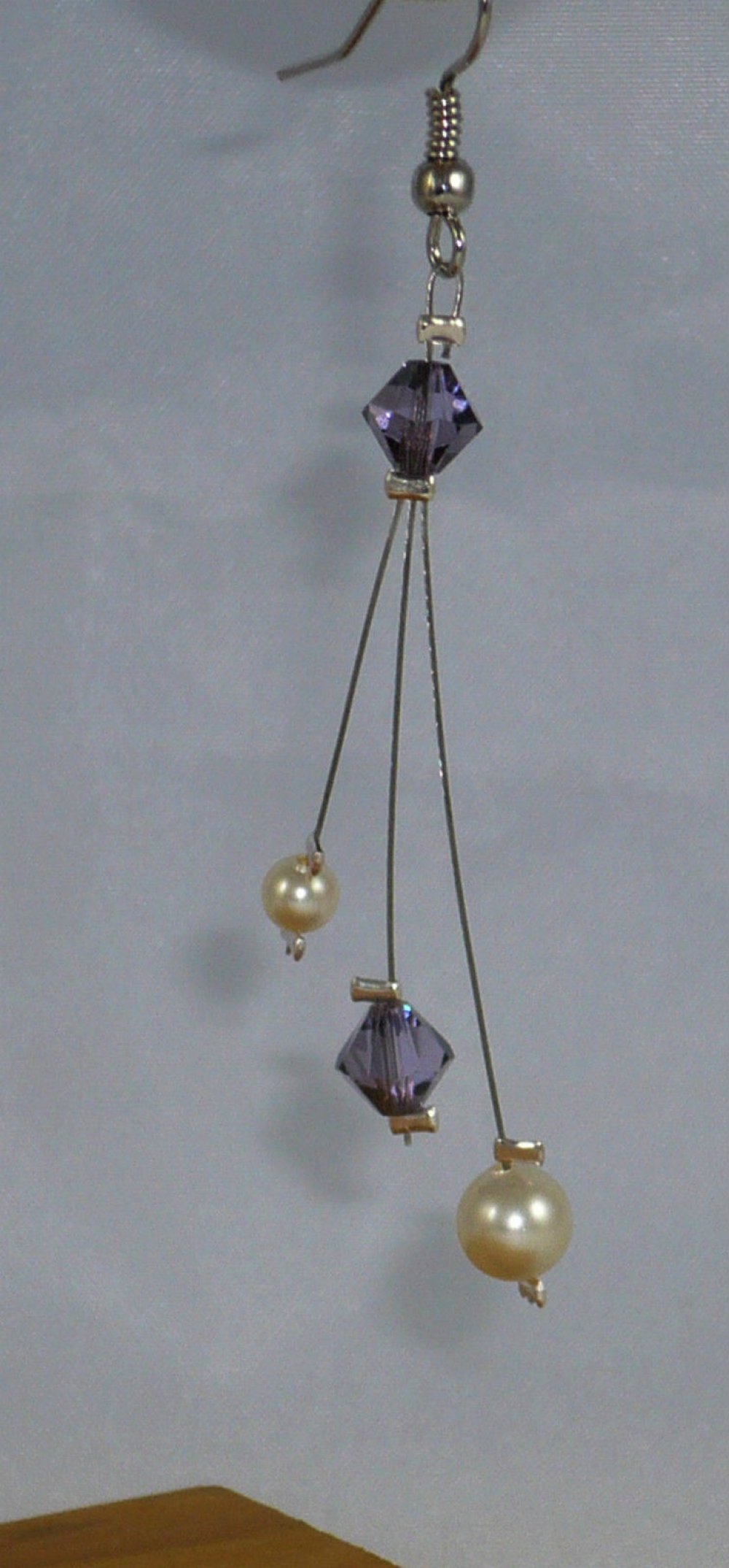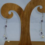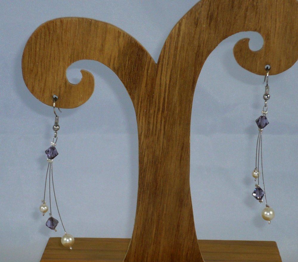 Boucles d'oreilles Trilemme violet et ivoire. Bijoux mariage en cristal de swarovski.