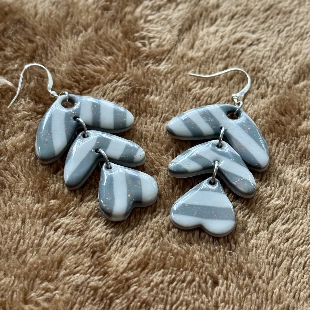 Jolie paire de boucles d’oreilles en pâte polymère et acier inoxydable forme chevron modèle « Trinity »