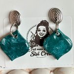 Aujourd’hui je te présente ces boucles d’oreilles faites mains en pâte polymère et acier inoxydable recouvert de résine UV et aux magnifiques reflets vert profond ✨