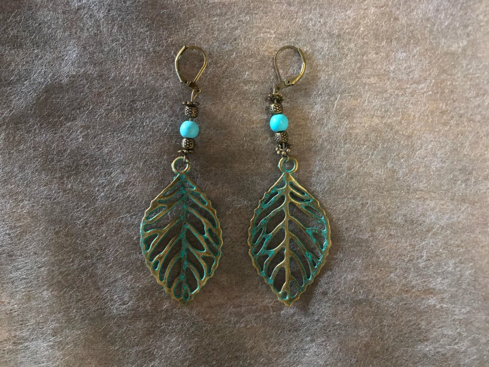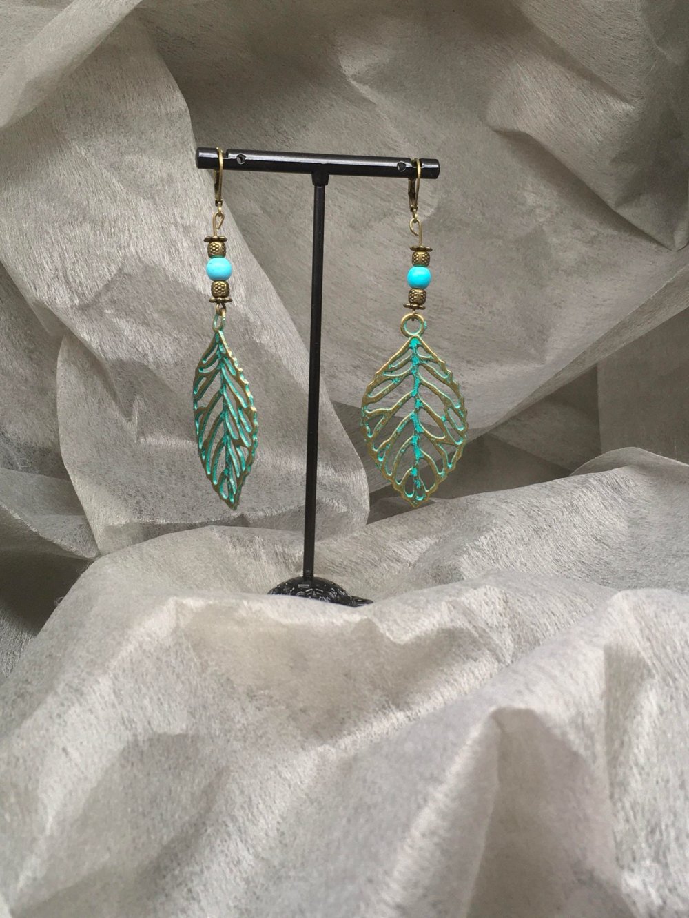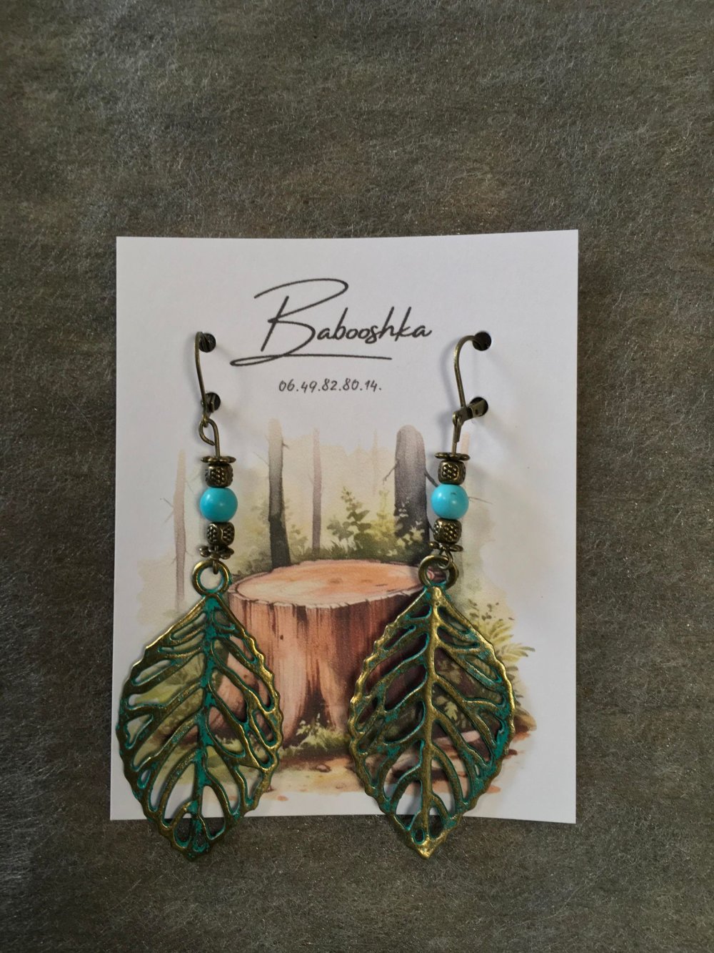 Paire de boucles d'oreilles fantaisie de la collection "Botanique", confectionnées artisanalement, entièrement montées à la main.