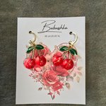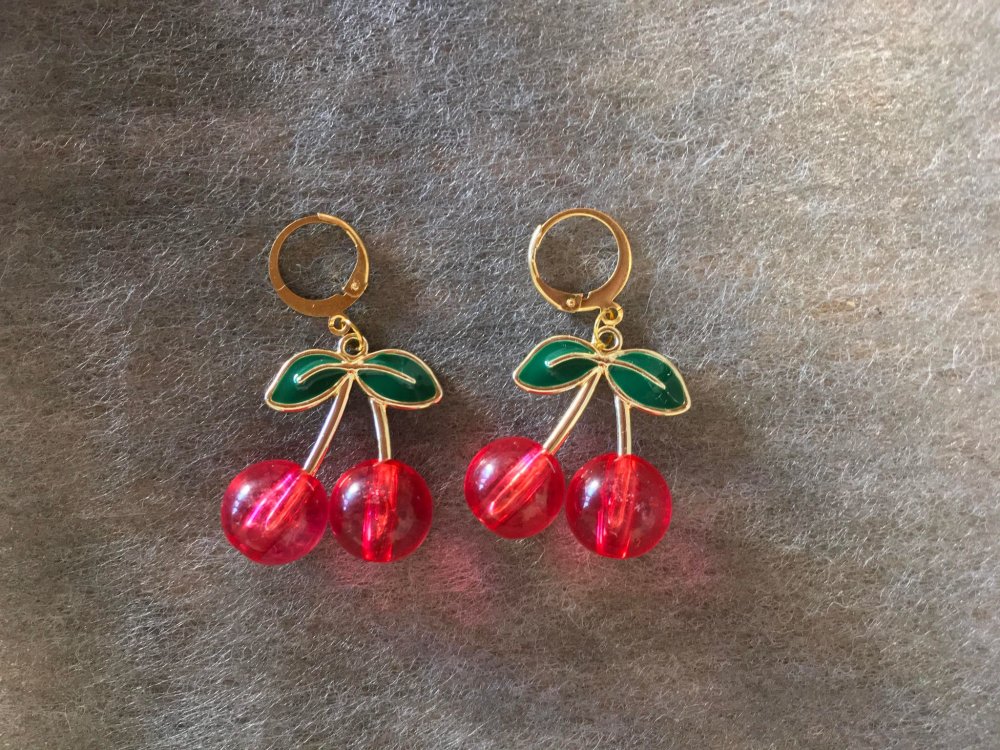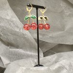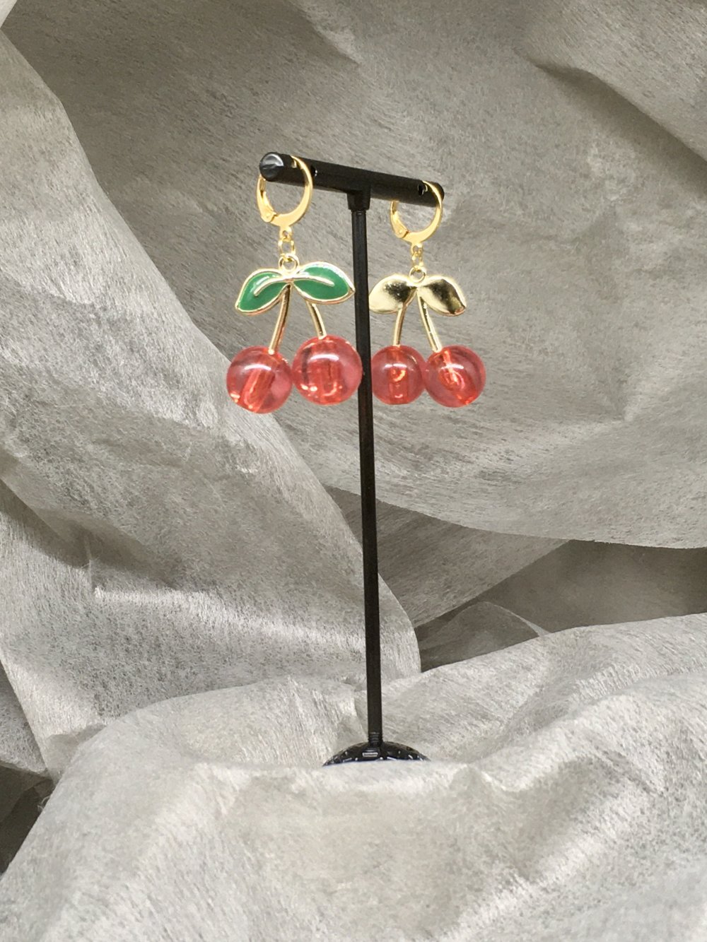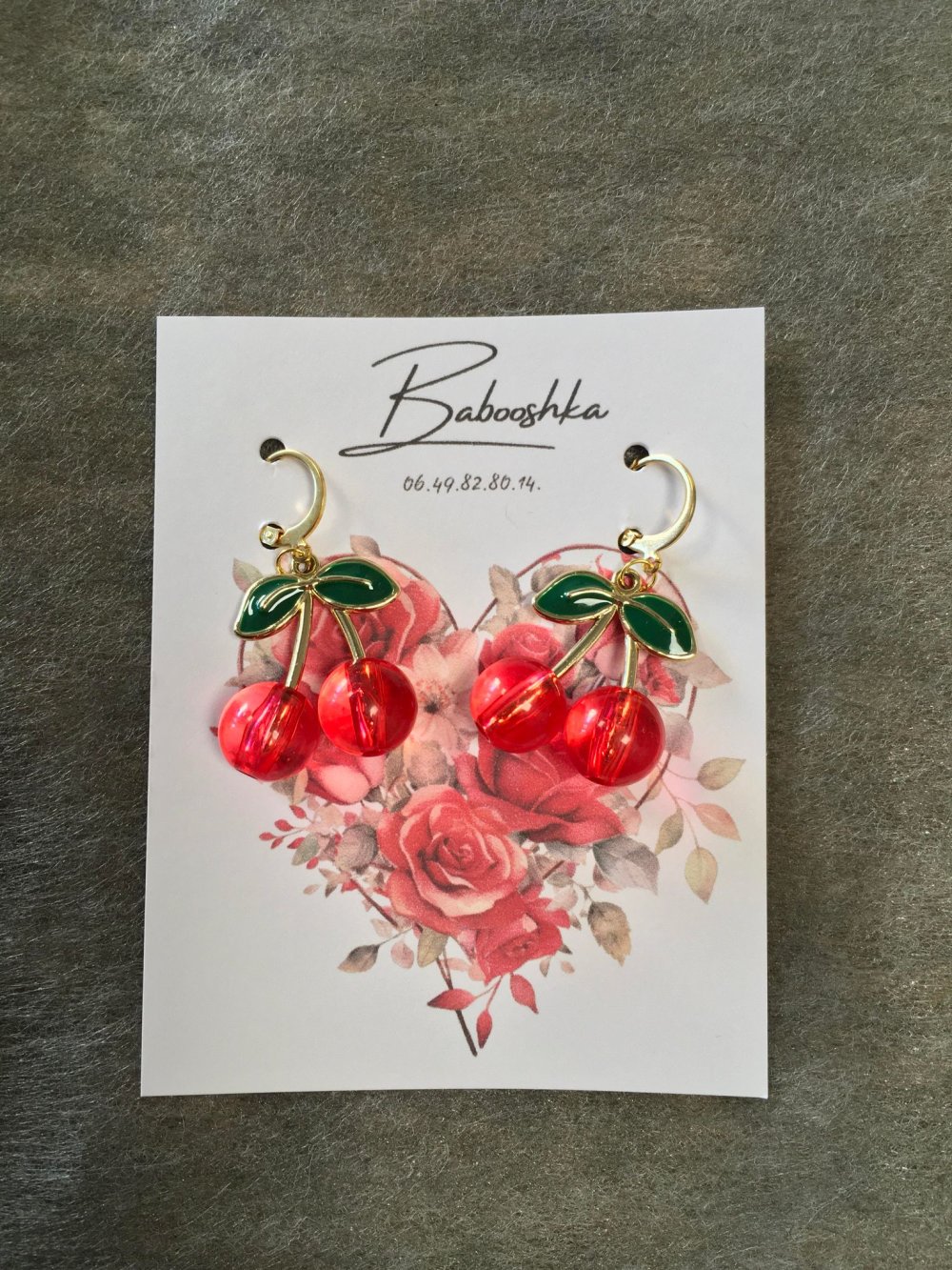 Paire de boucles d'oreilles fantaisie de la collection "Rouge passion", confectionnées artisanalement, entièrement montées à la main.