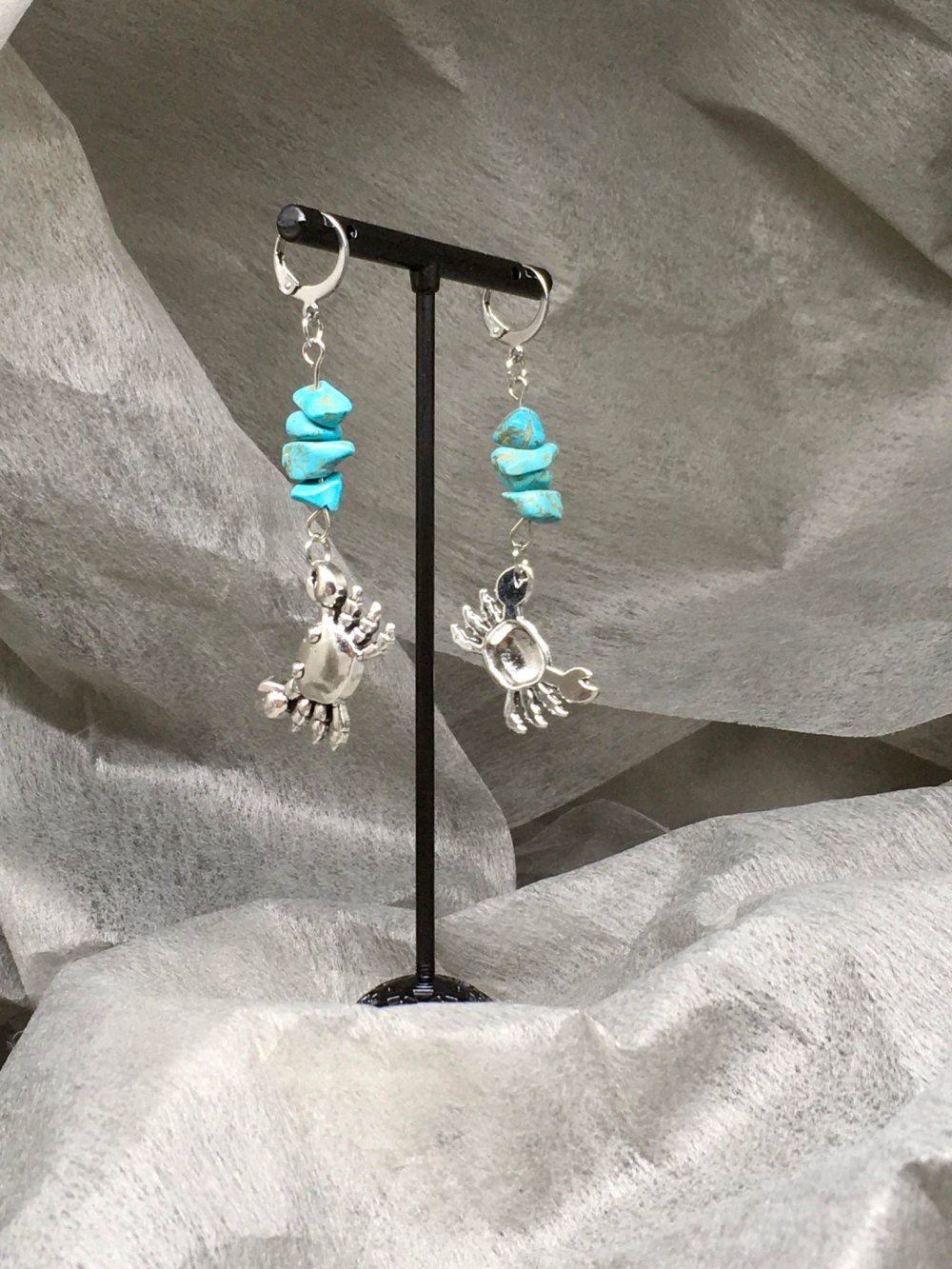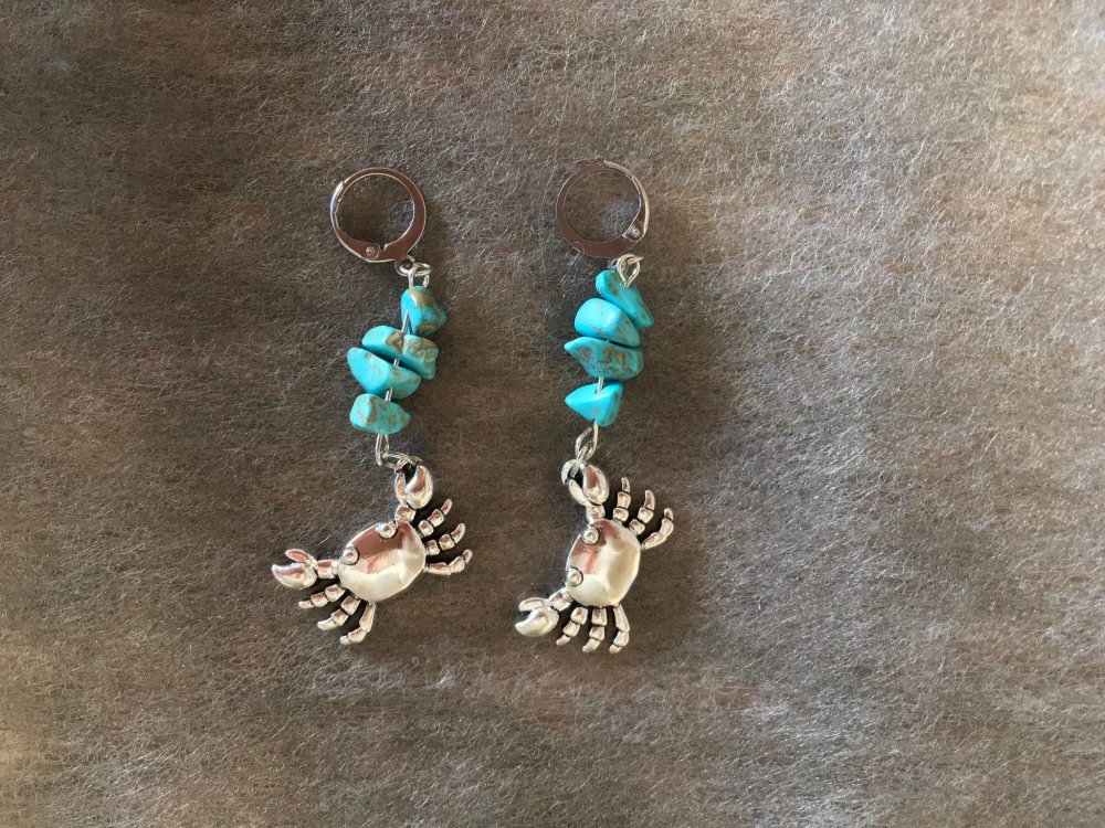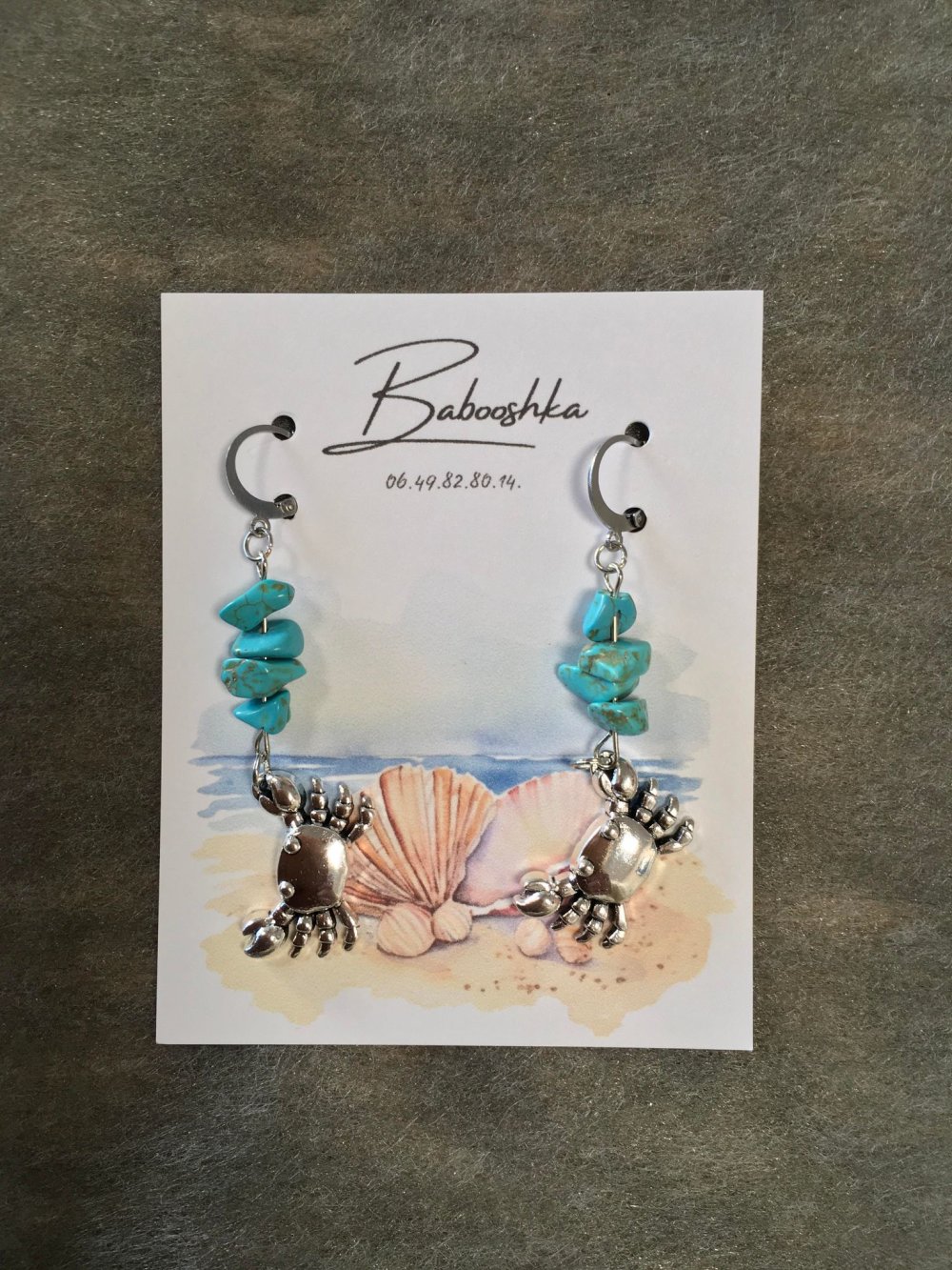 Paire de boucles d'oreilles fantaisie de la collection "Bord de mer", confectionnées artisanalement, entièrement montées à la main.