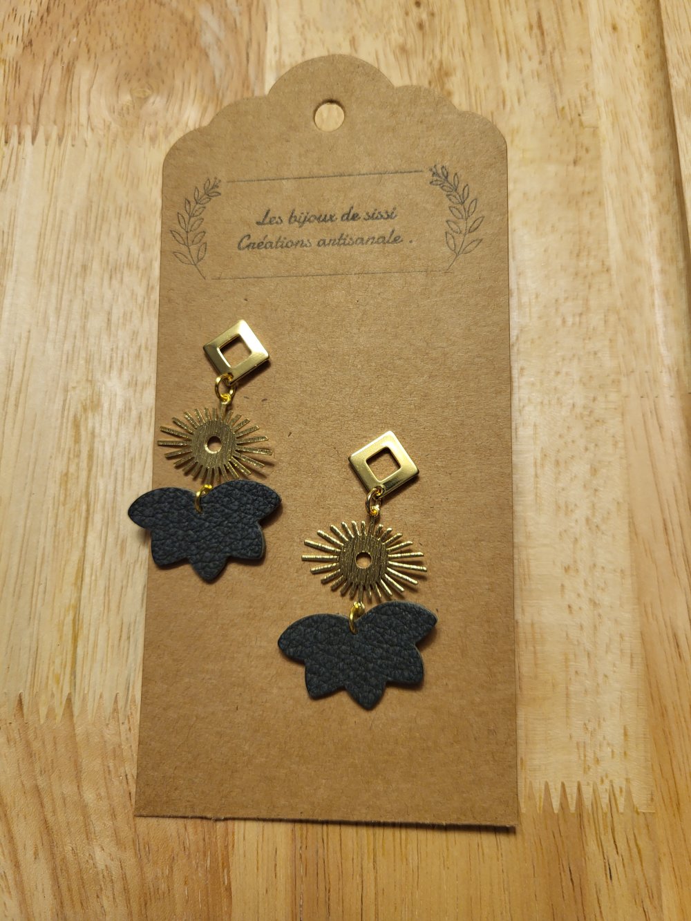 Boucles d'oreilles légères créations artisanales en cuir pailleté ,cuir naturel et liège.